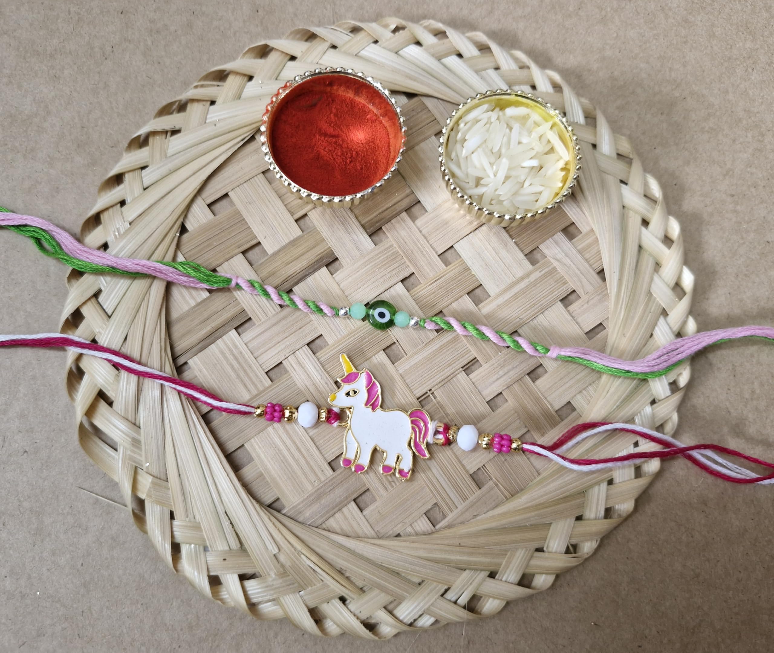 SHOPOGENIE Rakhi For Brother | Set Of 2 Rakhi With Roli Tika | Rakhi Card | Rakhi Set For Brother | Rakhi Combo