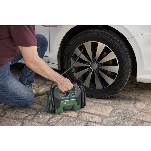 Performances élevées : Délivre jusqu’à 10,3 bar pour les tâches de gonflage sous pression exigeantes Le gonflage/dégonflage rapide du volume est obtenu avec un débit d’air de 400 l/min et un long tuyau. PAO 18V NOUVEAU Puissant compresseur d’air sans fil pour pneus et grands objets gonflables Soufflerie puissante: Jusqu’à 10,3 bar pour les travaux de gonflage sous pression exigeants Contrôle intelligent: Présélectionnez la pression souhaitée et laissez l’arrêt automatique s’occuper du reste Test du compresseur d'air sans fil Greenworks 40 V Contrôle intelligent: Après présélection de la pression souhaitée, la fonction arrêt automatique se charge d’interrompre le gonflage quand la pression est atteinte Pompe à air - compresseur d'air Bosch - UnilPump 18V (sans batterie, système 18V, pour les pneus POWER FOR ALL ALLIANCE: 1 BATTERIE, 10+ MARQUES, 150+ OUTILS Livré avec : PAO 18V, 1 clip de pompe à air pour valve de pneu, 1 valve française (Presta), 1 aiguille à ballon, 1 adaptateur de débit Pompe à Air Haute Pression AUTDER Compresseur D'air 21 V, Pompe à Pneu Sans Fil 180 Psi Avec Adaptateur De Voiture 12 V Compresseur Air Sans Fil Bosch De plus, le rangement intégré pour adaptateurs haute pression permet de tout organiser et de tout avoir à portée de main. Le PAO 18V est un compresseur d’air sans fil polyvalent à double fonction idéal pour les bricoleurs. Des fonctions intelligentes telles que des valeurs de pression présélectionnables vous donnent le contrôle et vous pouvez enregistrer jusqu’à 3 réglages fréquemment utilisés grâce à la fonction mémoire.