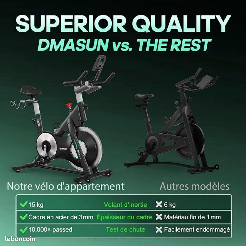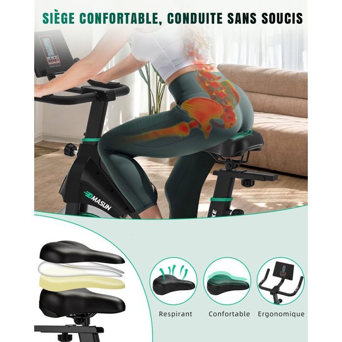 Velo Cardio Résistance Magnétique Test Riksion Vélo D'appartement: Résistance Magnétique Et Capacité 160 Kg Vélo D'appartement Silencieux Chaque vélo est soumis à 10 000 tests de chute pour garantir votre sécurité et votre fiabilité, même lors des entraînements les plus intenses. Ce suivi immédiat vous aide à ajuster votre effort, atteindre vos objectifs caloriques et mesurer votre progression, pour un entraînement toujours efficace et ciblé. Profitez d'un silence de 20 dB pour vous entraîner à tout moment, jour et nuit. 𝐕𝐨𝐭𝐫𝐞 𝐂𝐨𝐦𝐩𝐚𝐠𝐧𝐨𝐧 𝐅𝐢𝐝𝐞̀𝐥𝐞, 𝐀𝐮 𝐐𝐮𝐨𝐭𝐢𝐝𝐢𝐞𝐧: L'équipe DMASUN s'engage à vous offrir une garantie gratuite de 36 mois. Nous recueillons continuellement les retours de nos utilisateurs et optimisons nos services afin de vous offrir une expérience d'entraînement optimale. Notre équipe dédiée répondra à vos questions sous 16 heures et vous proposera des solutions. La selle réglable en quatre positions et le guidon réglable en deux positions s'adaptent parfaitement aux utilisateurs mesurant entre 140 et 190 cm, permettant un entraînement personnalisé. C'est cette passion pour la création d'entraînements cardio efficaces à domicile qui nous a poussés à concevoir ce vélo d'appartement. Test vélo d'appartement DMASUN : confort et résistance magnétique Il allie performances professionnelles, silence et design élégant. BH Fitness H8252 Vélo d’apparteent. Volant d’inertie 9 kg. Frein... Sa courroie plus large et plus épaisse assure un fonctionnement exceptionnellement fluide et silencieux. Il est fabriqué en alliage d'aluminium haute densité et doté d'un cadre en métal robuste et résistant (2,5 mm d'épaisseur). Son guidon ergonomique anti-transpiration, ses pédales à cage et sa selle à rebond élevé préviennent les glissades et les douleurs aux hanches, pour une expérience de conduite sereine. Que vous soyez un sportif expérimenté ou débutant, le velo d appartement DMASUN est idéal pour un entraînement cardio et musculaire complet. Utilisez les supports d'haltères pour tonifier vos bras, une vitesse basse pour l'échauffement, une vitesse moyenne pour le cardio brûle-graisses et une vitesse haute pour sculpter et définir vos jambes, abdominaux et fessiers. Son cadre en acier renforcé, doté de tubes 35 % plus épais, soutient des utilisateurs jusqu'à 180 kg avec une excellente stabilité, tandis que l'écrou de blocage de l'axe empêche tout glissement pour un entraînement sûr et à haute résistance. Test : vélo d'appartement DMASUN magnétique ultra silencieux 𝐁𝐫𝐮̂𝐥𝐞𝐮𝐫 𝐝𝐞 𝐆𝐫𝐚𝐢𝐬𝐬𝐞 𝟒 𝐞𝐧 𝟏: Affinez votre silhouette grâce à une résistance magnétique réglable de 0 à 100 %. 𝐄𝐱𝐩𝐞́𝐫𝐢𝐞𝐧𝐜𝐞 𝐈𝐦𝐦𝐞𝐫𝐬𝐢𝐯𝐞, 𝐃𝐨𝐧𝐧𝐞́𝐞𝐬 𝐞𝐧 𝐮𝐧 𝐂𝐥𝐢𝐧 𝐝'Œ𝐢𝐥: Le velo d appartement est équipé d'un écran LCD affichant en temps réel toutes vos données d'entraînement : temps, vitesse, calories, distance et kilométrage.