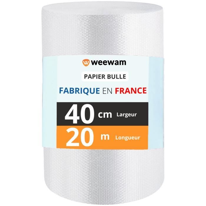 Stockage et archivage : Préserve les objets de valeur des rayures, de la poussière et de l’humidité lors d’un entreposage prolongé. Ce rouleau de 20 mètres de long, 50 cm de large et d’une épaisseur de 30 microns offre une couverture optimale et une excellente absorption des chocs, garantissant ainsi une sécurité renforcée contre les impacts, les vibrations et les rayures. Caractéristiques Principales : ✔ Grande longueur de 20 mètres : Idéal pour une utilisation prolongée, réduisant la nécessité de recharges fréquentes. 100 % recyclable : nous fabriquons en polyéthylène, un plastique qui peut être recyclé et réutilisé à 100 % Utilisations multiples : notre rouleau à bulles est idéal pour emballer tout type d'objet, en particulier ceux qui sont fragiles. Emballage Colis Bulles Amortissantes Réutilisables Rouleau De Papier Bulle Aspire - 300mm De Large - 5,10 Ou 20m - Pour Emballage Et Protection D'Objets Fragiles Matériel Déménagement Rouleau Papier Bulle ✅ Polyvalence d’utilisation : Convient aussi bien aux professionnels qu’aux particuliers pour une multitude d’applications. Son utilisation est fréquente dans les déménagements, le bricolage, l'expédition, le transfert, la logistique et les travaux manuels, entre autres ✔ Protection efficace : Conçu pour absorber les chocs et éviter les dommages causés par les manipulations et le transport. Idéal pour les déménagements, les envois E-Commerce et Vinted ROULEAU BULLE BLEU (1 m x 50m Papier Bulle 20m x 50cm x 30 microns – Protection Maximale pour Emballages et Expéditions Le papier bulle est un matériau essentiel pour la protection des objets fragiles, que ce soit pour un déménagement, un envoi postal ou un stockage de longue durée. ✔ Léger et flexible : Facile à découper et à ajuster selon les besoins, s’adaptant à toutes les formes d’objets. Indispensable pour protéger efficacement vos biens ! ✔ Largeur de 50 cm : Format polyvalent, permettant un emballage pratique et efficace de divers objets, petits et grands. Bricolage - Découvrez notre offre Rouleau Papier Film à bulles - 20 mètres x 50 cm - FABRIQUÉ EN FRANCE - Idéal Emballage Déménagement ou Expédition Colis - Pap [7 Rouleau Film bulles / Papier bulle : largeur 50cm x 20m ✅ Facilité d’utilisation : Se découpe facilement aux dimensions souhaitées.