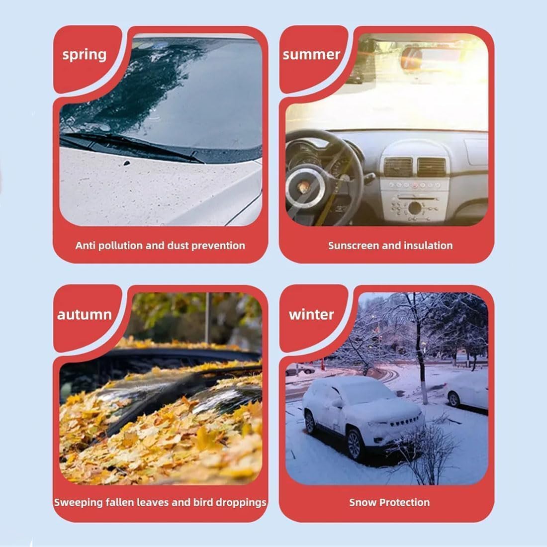 Profitez d'une voiture plus fraîche, même lors des journées les plus chaudes. Propriétaires de Renault Twingo 3, protégez votre voiture avec cette bâche anti-grêle ! En tissu Oxpourd polyester épaissi, elle amortit les impacts de grêle et protège contre les UV, la pluie, la poussière et le froid Notre bâche de pare-brise 4 saisons est la solution ultime pour vous faire gagner du temps et assurer le confort de votre véhicule, quelle que soit la météo. En été, elle agit comme un pare-soleil anti-UV pour aider à réduire l'accumulation de chaleur à l'intérieur du véhicule PROTECTION TOUTES SAISONS : Protège efficacement votre pare-brise contre le givre, la neige et la glace en hiver. Une fois son utilisation terminée, elle se plie de manière compacte pour un rangement aisé dans le coffre ou sur un siège arrière Cela garantit un maintien ferme face au vent et offre un effet dissuasif contre le vol Z.MYUKI] Espace V Pare Soleils pour Pare-Brise pour Renault Espace 5... VOS MATINS D'HIVER, SIMPLIFIÉSOubliez la corvée quotidienne du grattage de la glace et de la neige. Bâche de pare brise antigivre 70x160 cm - Feu Vert Bâche Anti-givre Anti-UV MMUNNA Protege Pare Brise Hiver,pour Ren-Ault Twingo 3 2014-2023,Couverture Brise BâChe Anti-Neige Anti-UV PoussièRe Accessoires,157 * 126CM Bâche Pare-brise 140x90 Cm Ajoutez cette bâche de protection 4 saisons à votre panier et offrez à votre voiture la protection complète qu'elle mérite. Cette bâche anti-givre agit comme un bouclier protecteur contre les conditions hivernales les plus rudes. Installez-la le soir et découvrez un pare-brise parfaitement clair le matin. UNE DÉFENSE EFFICACE CONTRE LA CHALEUR EN ÉTÉEn été, cette bâche se transforme en un puissant pare-soleil. Sa surface argentée réfléchissante bloque les rayons UV nocifs et agit comme un réflecteur de chaleur, réduisant considérablement la température à l'intérieur de l'habitacle.