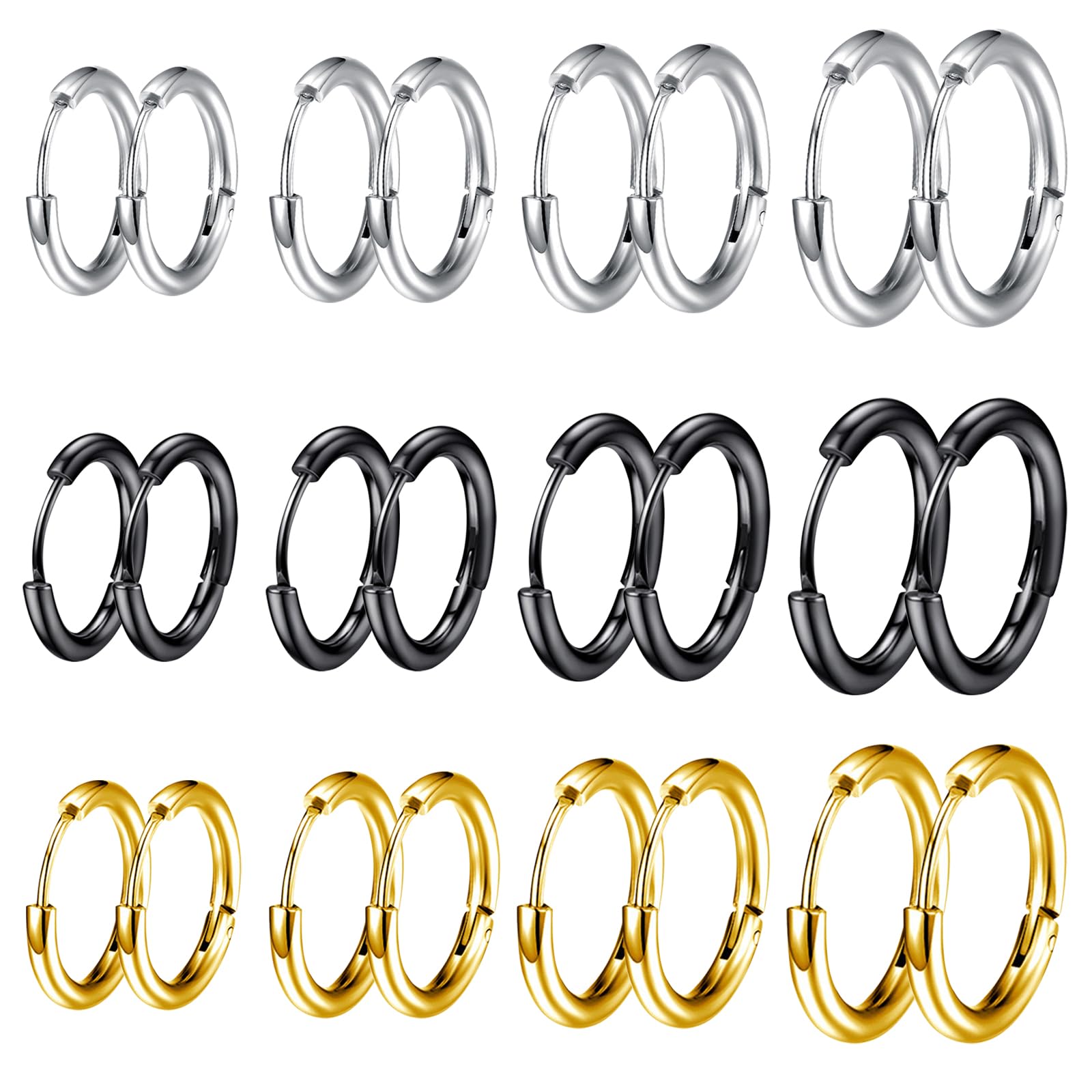 L'assortiment Quotidien:Différentes couleur de boucles d'oreilles en peuvent être assorties à différents styles de vêtements, et la conception simple du cerceau convient à toutes les occasions et ne se démodera jamais Boucles d'oreilles créoles en acier inoxydable chirurgical 316L - 10 mm/12 mm/14 mm - Doré/noir/argenté/or rose - Boucles d'oreilles créoles hypoallergéniques pour cartilage, hélix, lobes - Pour homme et femme, Métal., Non Avec des boucles flexibles Convient aux boucles d'oreilles, aux anneaux de nez, aux anneaux de lèvres, aux boucles d'oreilles de cartilage, aux anneaux de sourcils et plus encore - il est plus facile de les porter sans se blesser les oreilles - Les fermoirs sont flexibles, faciles à mettre et à décoller - Ces petites boucles d'oreilles en forme de cartilage ont un design élégant et minimaliste qui convient à tous les âges ces boucles d'oreilles créoles ont un look sophistiqué et sont parfaites pour maman, épouse, fille, sœurs, amis Cadeau Parfait:est le cadeau d'anniversaire parfait, le cadeau d'anniversaire, le cadeau de la Saint-Valentin, le cadeau de la fête des mères, le cadeau de Thanksgiving et le cadeau de Noël 5 Paires Acier Inoxydable Boucles d'Oreilles Anneau Homme Femme Boucles d Oreilles Créole Argent, Boucle d Oreille Homme Anneaux, Boucle d'oreille Femme Creole, Boucle d Oreille Argent Petite Conception à Dos Plat:Avec des boucles flexibles, il est plus facile de les porter sans se blesser les oreilles