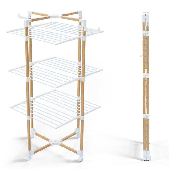 Ses tiges espacées permettent à l’air de circuler librement pour un séchage plus rapide et homogène. Grand étendoir à linge : grande capacité gris et blanc - SUPRA | ID Market LES + PRODUITS Grande capacité de séchage, Stabilité renforcé, Matériau robuste, Pliage rapide Ce séchoir pliable se replie facilement lorsqu’il n’est pas utilisé et se déploie en quelques secondes, sans aucun montage nécessaire. GRANDE CAPACITÉ DE SÉCHAGE : Avec ses 25 m de surface d’étendage, cet étendoir à linge offre un espace généreux pour sécher vêtements, draps et serviettes en une seule fois. Léger et facile à déplacer, il peut être utilisé sur un balcon, dans un jardin, une buanderie ou une salle de bain, tout en s’harmonisant avec votre décoration. Ses ailes pliantes sur les quatre côtés se déploient largement pour optimiser l’espace disponible et accueillir encore plus de linge sans encombrer votre intérieur. PLIAGE RAPIDE : Ce séchoir pliable se replie facilement lorsqu’il n’est pas utilisé et se déploie en quelques secondes, sans aucun montage nécessaire. Il convient pour les vêtements du quotidien ainsi que les serviettes. DESCRIPTIONS Avec ses 25 m de surface d’étendage, cet étendoir à linge offre un espace généreux pour sécher vêtements, draps et serviettes en une seule fois. Conçu en métal résistant, cet étendoir à linge ne se déforme pas et vous accompagnera pendant de nombreuses années. Séchoir à linge pliable avec 2 ailes latérales - étendoir mobile 3 niveaux - 25m de séchage - 69x69x136 cm style bois blanc - VOUNOT® | Leroy Merlin Etendoir Linge Interieur VOUNOT Séchoir à Linge Pliant Étendoir à Linge Compact Séchoir Pré Tancarville Linge Solide Xxl Idéal pour un usage intérieur comme extérieur.