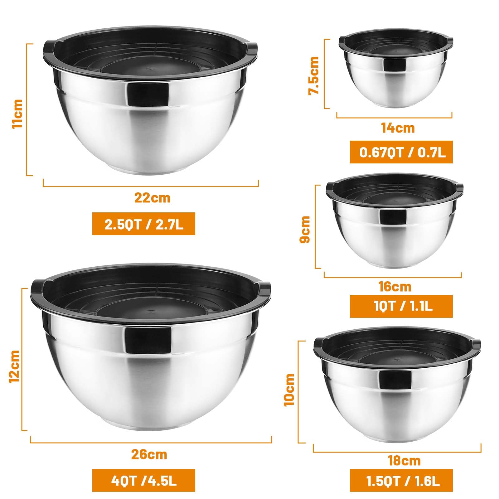 Cela garantit que les aliments restent sains et sûrs. BOLS EMBOÎTABLES] Conçus pour avoir la même capacité que les bols mélangeurs classiques, ces bols évitent les débordements. Bols et couvercles s'emboîtent parfaitement pour un gain de place maximal dans vos placards La construction robuste de ces bols les rend résistants à la déformation et à la rouille. Le fond plat des bols assure la stabilité lors du mélange et la construction monobloc signifie que vous n'avez pas à vous soucier des fuites. De plus, ils sont également idéaux pour préparer, conserver les aliments, conserver les restes, conserver les fruits et légumes. Bols Mélange Empilables Cuisine Mkitnvy Ensemble De Bols Mélangeurs,5 Avec Couvercles,4.5L/ | WhichOne Casserole Induction Cela rend le nettoyage beaucoup plus facile. ◊ 【Multifonctionnel et polyvalent】 Avec 5 tailles différentes (4,5 / 2,7 / 1,5 / 1,2 / 0,7 litres), cet ensemble de bols répond à une variété de besoins en cuisine. Il est parfait pour battre les œufs, assaisonner les salades, mélanger la pâte à gâteau et pétrir. ◊ 【Couvercles hermétiques pour plus de fraîcheur et de polyvalence】 Cet ensemble de bols est livré avec 5 couvercles hermétiques qui gardent vos aliments frais et sains. Ensemble De 5 Bols à Mélanger En Acier Inoxydable Avec Couvercle Pour Recipients Alimentaires De Cuisine A Domicile 86964471 Les couvercles vont également au congélateur. Multifonctionnel et polyvalent] Avec 5 tailles différentes (4,5 / 2,7 / 1,5 / 1,2 / 0,7 litres), cet ensemble de bols répond à une variété de besoins en cuisine
