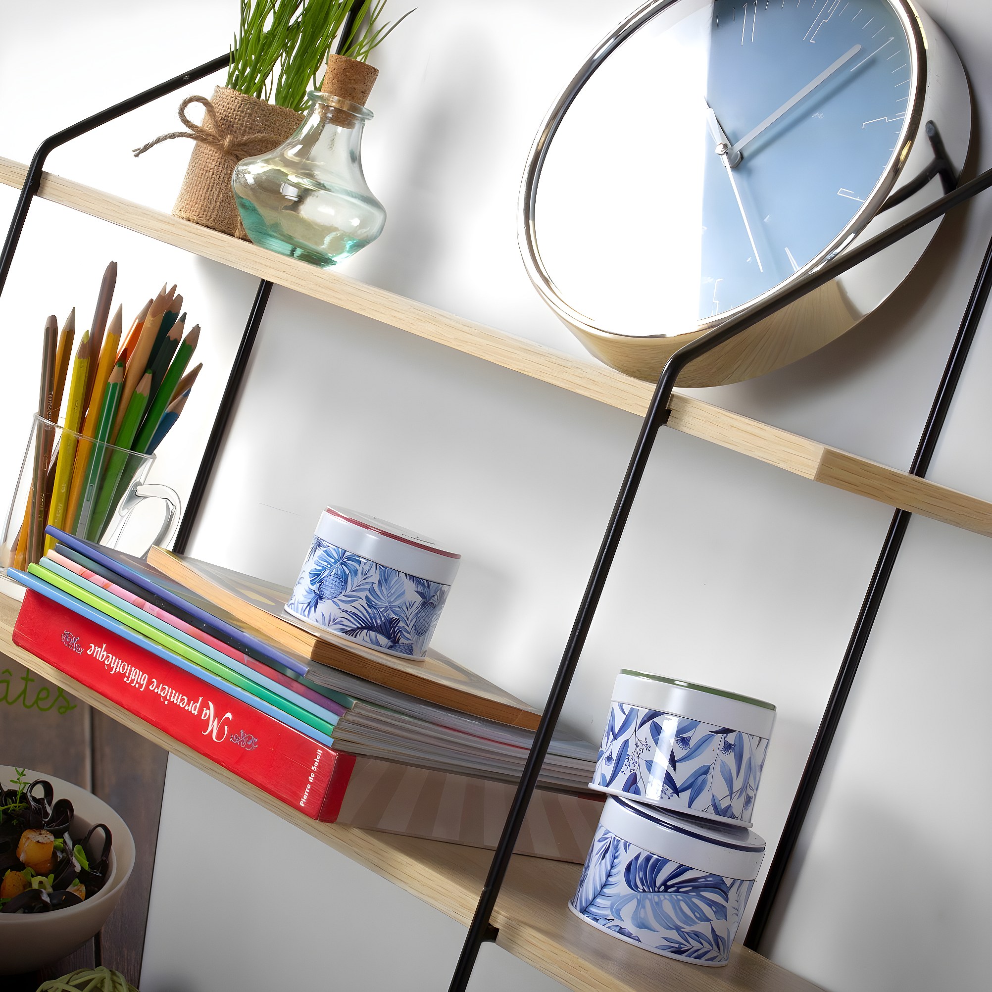 Nombreuses utilisations possibles (exemple bureau). De nombreux produits Stilista ont des développements de design propres et sont donc uniques sur le marché. Charge maximale : 10 kg - Dimensions rondes : largeur 48 cm, hauteur 48 cm, profondeur : 12 cm, épaisseur des étagères : 1,2 cm., Charge maximale : 10 kg. Choix de la couleur et du modèle 4 modèles attrayants: rond, rectangle, losange et hexagone, Deux couleurs: Gris rustique, Rustique clair Charge maximale : 10 kg - Dimensions hexagonales : largeur 51 cm, hauteur 58 cm, profondeur : 11 cm. Etagère murale ronde LILY 4 niveaux bois et métal épais design industriel | Leroy Merlin Nombreuses possibilités d'utilisation (exemple chambre). STILISTA Étagère design ronde en panneaux de fibres MDF testé selon la norme E1, placage: PVC, étagère complète testée contre les substances nocives Les étagères murales sont non seulement jolies, mais elles offrent également des services utiles, que ce soit dans le salon, le bureau, la chambre à coucher, la salle de bain, la chambre d'enfant, le couloir ou la cuisine étagère Pour Salon Bureau STILISTA® Étagère Murale Design, 4 Niveaux, Choix De Couleurs & Modèles Etagere Ronde Murale Choix des couleurs : Grâce à la sélection de couleurs, vous pouvez parfaitement combiner l'étagère avec d'autres meubles. Épaisseur des étagères : 1,2 cm. L'étagère design STILISTA® est disponible en 4 modèles différents : Ronde, Hexagonale, Rectangulaire et Losange. Grâce au choix de couleurs entre bois clair et bois foncé, vous pouvez parfaitement combiner l'étagère avec d'autres meubles Charge maximale : 10 kg - Dimensions des carreaux : largeur 48 cm, hauteur 47 cm, profondeur : 11 cm. Nombreuses possibilités d'utilisation (exemple le salon). La marque Stilista est synonyme de style et de design pratique. Grâce au style industriel, l'étagère murale design confère à chaque pièce une belle atmosphère tout en assurant l'ordre