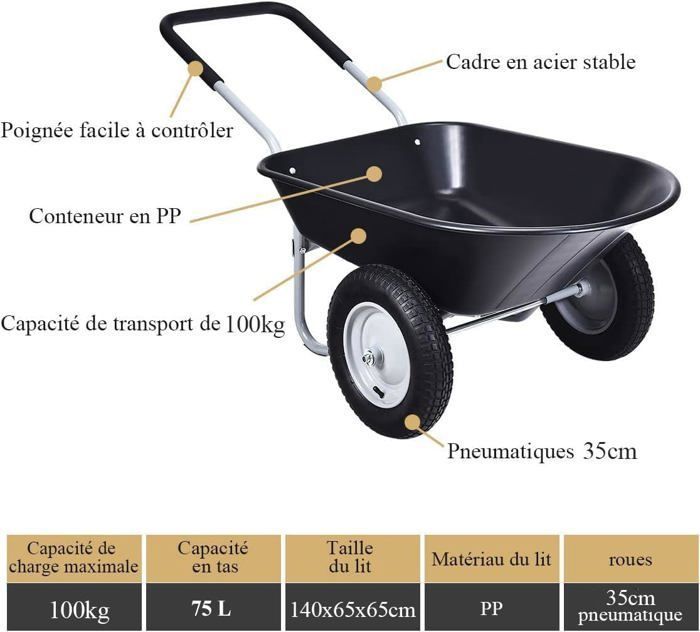 Dimensions : 57 x 84 x 92,5 cm | Capacité : 95 litres | Matériau : plastique | Couleur : vert Page de garde d'arts plastques en 2024 | Tutorel de dessn... La brouette Load&Go est polyvalente et adaptée pour transporter une variété de matériaux, des déchets de jardin aux petits outils, en passant par la neige et le bois de chauffage, répondant ainsi à différents besoins, des plus légers aux tâches plus exigeantes La brouette de jardin Load&Go est l'allié parfait pour tout type de travail dans le jardin et autour de la maison. La brouette Load&Go, d'une capacité de 55 litres, est polyvalente et adaptée pour transporter une variété de matériaux, des déchets de jardin aux petits outils, en passant par la neige et le bois de chauffage, répondant ainsi à différents besoins, des plus légères aux tâches plus exigeantes. Brouette Jardin 100 Litres Brouette De Jardin Load&Go | Capacité 95 Litres | 57 X 84 X 92,5 Cm | En Plastique | Deux Roues Renforcées En Caoutchouc | Pour Le Transport Des Matériaux Et Des Brouette Jardin 150 Kg Caractéristiques techniques : Dimensions : 57 x 84 x 92,5 cm., Capacité : 95 l., Matériau : plastique., Couleur : vert. Page de garde d'arts plastques en 2024 | Tutorel de dessn La brouette de jardin Load&Go est l'allié parfait pour tout type de travail dans le jardin et autour de la maison La structure légère mais stable en plastique robuste et les roues renforcées en caoutchouc assurent durabilité et résistance même sur les terrains difficiles.