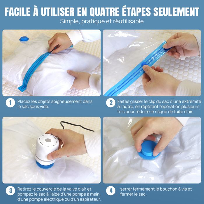 Sortie Monotrou Évent à sens unique pour dégonfler et empêcher le reflux d'air. Meilleur Sac sous vide vêtement : Comparatif et guide d'achat Joint Bilatéral et Vanne D'étanchéité Indépendante La pochette se ferme mieux et le clip séparé le rend plus pratique pour vous. 👕[Protection & Propreté] La double fermeture garantit que le sac sous vide est hermétique, que ce soit dans la cave ou sous le lit, le contenu du sac reste propre et sec. Ne fonctionne pas avec aspirateur/pompe. Sac Voyage Gain De Place Lot De 12 Sacs De Rangement Sous Vide Réutilisables Avec Fermeture Sacs Rangement Sous Vide Main Gain Place Voyage Valise Économisez jusqu'à l'espace dans votre valise ou votre sac à dos. Qui garde vos affaires à l'abri de l'humidité, des insectes, de la poussière et des mauvaises odeurs. Anti-moisissure et résistant à l'humidité, il peut bien protéger les vêtements et les articles. 👔[Assistant de Voyage] Notre sac ziplock est très facile à utiliser, aucun aspirateur ou pompe d'aspiration n'est nécessaire pour enlever l'air. Sac de Rangement sous Vide 7 Pièces 2XL 100x80cm +3L 80x60cm + 2M Il suffit d'appuyer dessus avec nos mains pour évacuer l'air, et le volume peut être mieux réduit. 8 Pièces Sac sous Vide Voyage,Sacs de Compression, s Sac Sous Vide Roulé à la Main,Sac de...