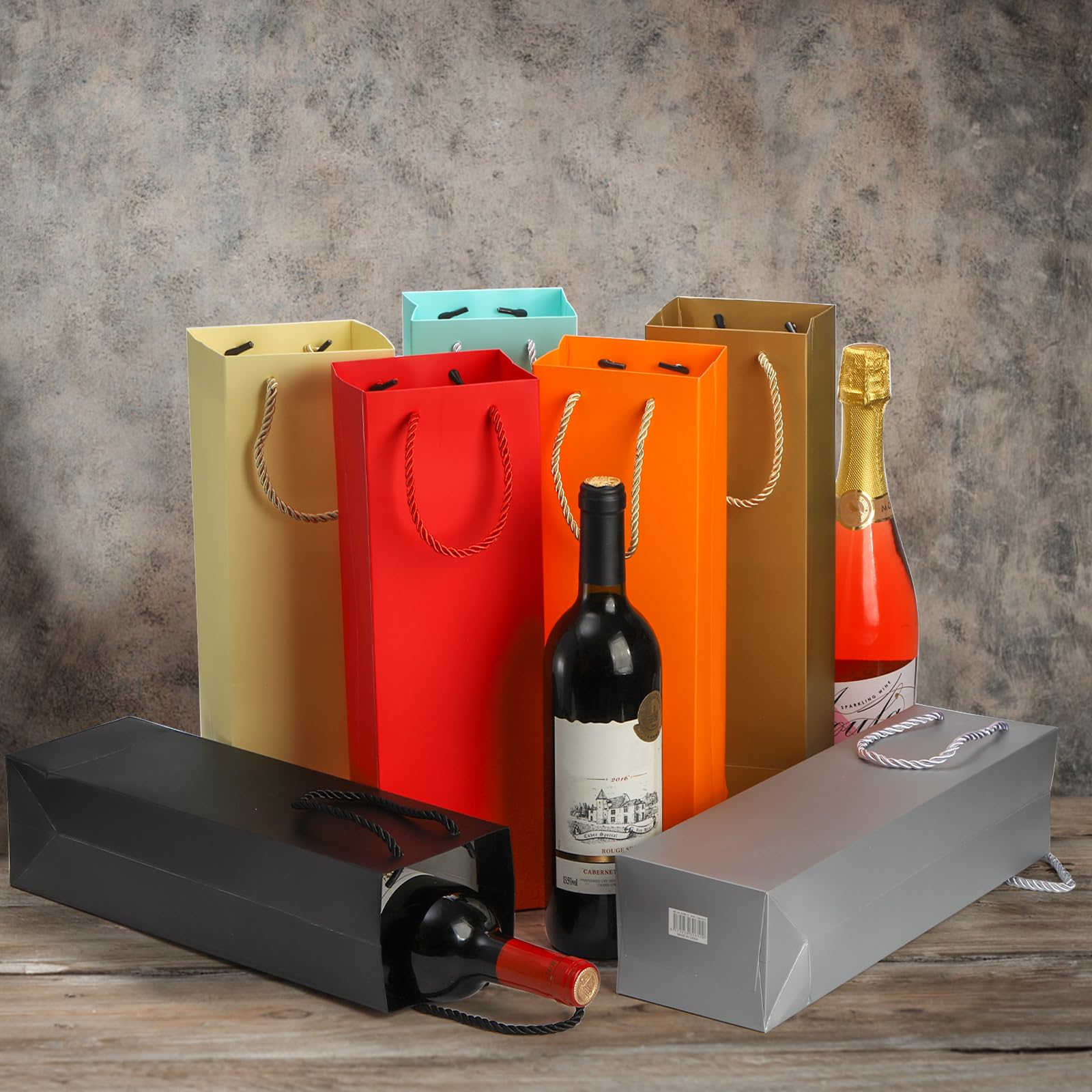 Sacs à bouteille de vin - Canada Emballage Vin élégant Poignées Transport Facile SEUNMUK Lot De 30 Sacs Cadeaux Pour Bouteille De Vin En Vrac Noir De 35,8 X 10,9 X 8,9 Cm, 250 G/m², Sacs Cadeaux En Papier Solide Avec Poignées, Sacs En Papier Sac Fourre-tout Fête Utilisation polyvalente : le sac à bouteille de vin avec poignée est idéal pour offrir du vin lors de fêtes, anniversaires ou comme emballage pour le shopping ou les événements, assurant une impression durable. Couleur : noir et doré. Quantité : comprend 24 sacs cadeaux pour bouteille de vin, parfaits pour les fêtes, le shopping, les anniversaires ou toute occasion spéciale. Van Henry Lot de 10 sacs cadeaux élégants pour bouteilles de vin, champagne, etc. 32,5 x 11 x 9 cm, Noir., Poche pour bouteille Noir. 4,4 (240) Plus de 100 achetés au cours du mois dernier Matériau : fabriqués à partir de papier cartonné noir, ces sacs fourre-tout pour vin disposent d'une élégante finition noire et dorée. 12 Sacs à Bouteilles pour Cadeaux Sacs à Bouteilles de Vin Noir et... Design : équipés de poignées robustes pour un transport facile, ces sacs fourre-tout à vin combinent fonctionnalité et sophistication pour toutes les occasions. Dimensions : 10 x 10 x 35 cm.