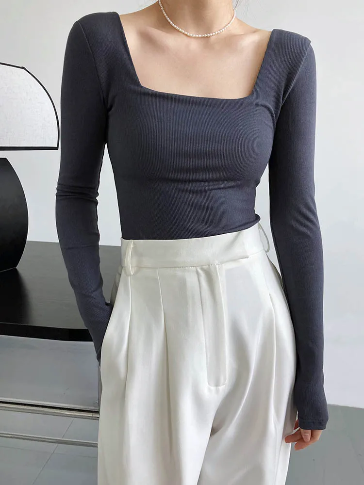 Haut Côtelé à Manches Longues Avec Encolure Carrée – Urban Planet