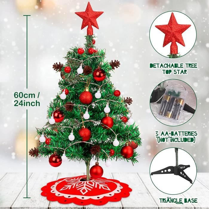 Ceci est un sapin de Noël réutilisable 【Matériaux de Haute Qualité】Mini sapin de Noël en PVC sûr et non toxique est durable et évite le problème de la perte de feuilles des vrais arbres. 【Petit et Léger】Larbre de noël de la table à manger mesure 60 cm de haut, de taille parfaite, relativement petit en forme et en poids, polyvalent. 【Conception Intégrée】Pas besoin installation fastidieuse, dépliez simplement les branches et les feuilles et accrochez les décorations, vous aurez un sapin de noël plein ambiance, c'est un sapin de noël réutilisable il peut être placé n'importe où dans votre maison pour ajouter une ambiance festive à votre espace de vie Petit Sapin Avec Baies Rouges Uten Petit Sapin De Noel, 60 Cm Mini Sapin Noel Lumineux, Avec 50 LED Sapin PVC Réutilisable Mini sapin Noël LED guirlande pommes pin baies rouges, décoration 【Cadeau de Noël】Mini sapin de noël est le meilleur choix pour les parents, les amis et les amoureux.