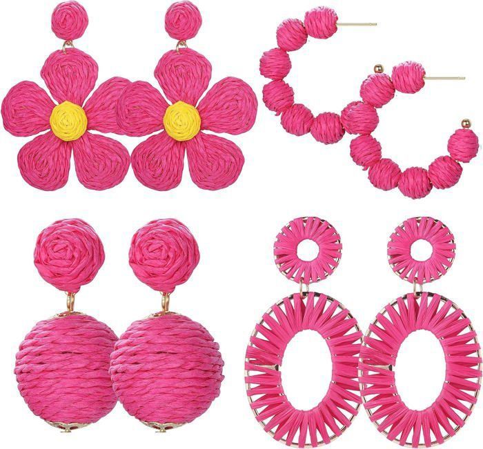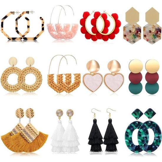 Mignon, nouveauté, créatif dans le style. Légères : chaque paire de boucles d'oreilles créoles géométriques bohèmes est légère en raison du matériau non métallique, confortable à porter, pèse de 3,1 g à 7,4 g, ne mettra pas de poids sur vos oreilles, peut être portée pendant une longue période. Boucles d'oreilles rotin - Soleil - Arbrobijoux Boucles d'orelle goutte de rotn en fleurs blanches éternelles... Imaginez une belle femme, boucles d'oreilles de style bohème, l'été, le jus et la plage, quelle scène confortable, vive et confortable. Boucles d'oreilles en raphia pour femme, bois, forme géométrique Convient à toutes les occasions : ces boucles d'oreilles bohèmes en rotin sont adaptées à de nombreuses occasions. ces boucles d'oreilles bohème polyvalentes et tendance sont un excellent choix de bijoux Boucles Pendantes Légères Femme Or Boucles D'oreilles Paille, Boucles D'oreilles Rotin, Rotin Boucles D'oreilles été Paille Fait Main Bohémien : la parure de boucles d'oreilles bohème est un élément de mode très populaire sur le marché actuel des bijoux. Fabriqué à la main : le lot de boucles d'oreilles en rotin et paille contient 4 paires de boucles d'oreilles pendantes de différents styles, fabriquées à la main à partir de matériaux en bois d'osier et de rotin de haute qualité. La production est fine et les matériaux sont issus de la nature, sans pollution et respectueux de l'environnement