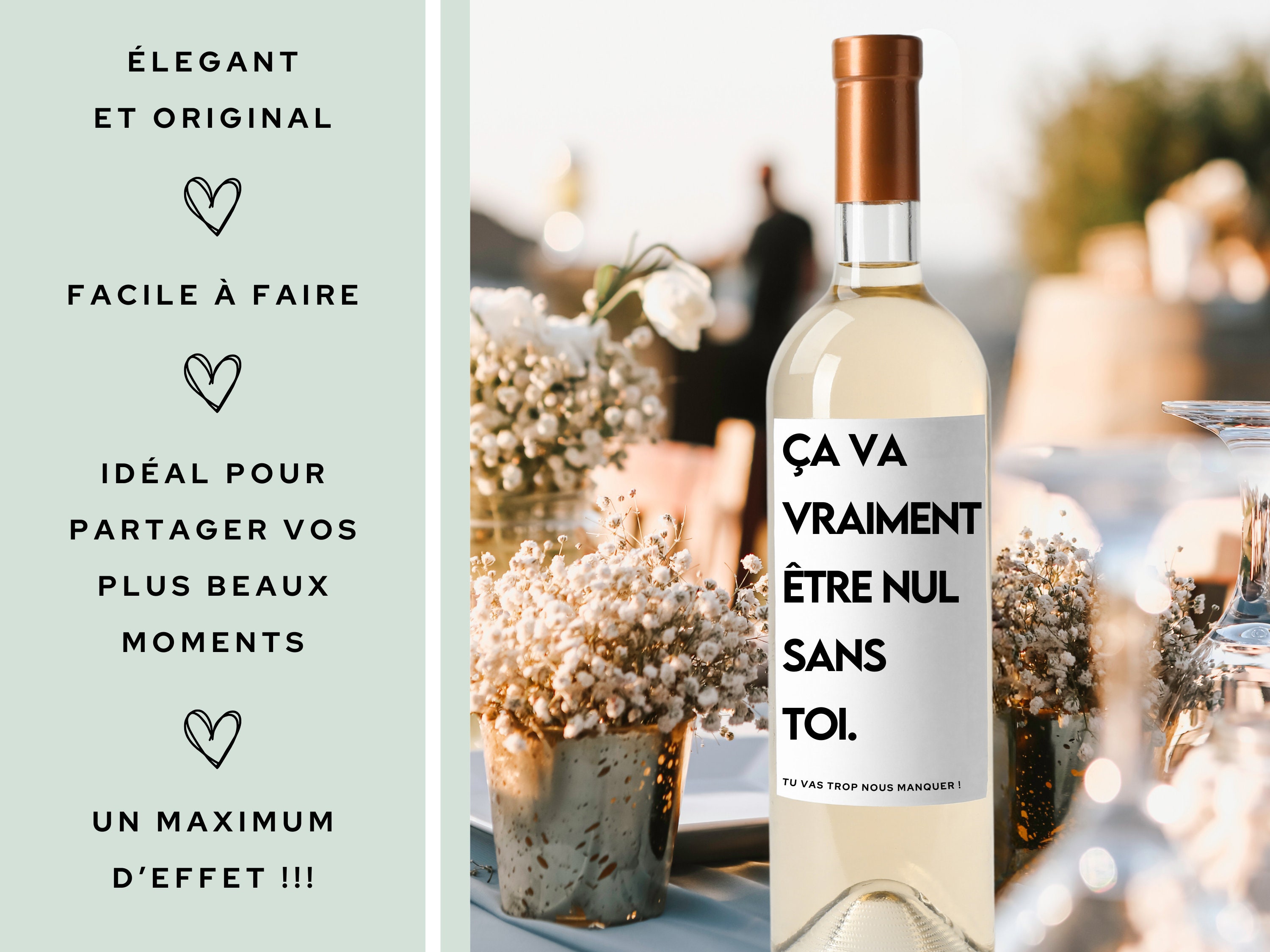 Idées cadeau Pot de Départ | Cuvée Privée Autocollants Vin Personnalisés Collègue Pot À Crayons Humour Collègue Pas Gagné Idée Cadeau Original Amitié étiquettes Vin Pot Départ Retraite 📦 Bouteille non fournie – laissez libre cours à votre inspiration pour choisir le vin parfait Que ce soit pour un pot de départ mémorable, un anniversaire festif, une retraite bien méritée, ou une annonce spéciale en entreprise, ces autocollants pleins d’humour transforment instantanément vos bouteilles préférées en présents inoubliables. 🍷 Étiquettes de vin pleines d’humour et de style : Offrez une touche personnalisée et décalée à vos bouteilles de vin grâce à des étiquettes drôles et originales. Picrate vous propose de créer et d’imprimer des étiquettes de vin personnalisées, pour tous vos événements. Que ce soit pour un anniversaire, un mariage, un cadeau d’entreprise ou toute autre occasion, vous pouvez personnaliser votre bouteille de vin avec le texte, les images, les couleurs et les polices de votre choix Parfait pour faire sourire vos proches lors de toutes les occasions ! Badge magnet / Cadeau de départ original / Super collègue 🎉 Le petit cadeau qui fait toujours plaisir : Anniversaire, pot de départ, fête, retraite ou simple attention… ces étiquettes transforment n’importe quelle bouteille en présent inoubliable. Imprimées localement dans notre atelier français sur un papier adhésif de haute qualité, ces étiquettes s’adaptent facilement à la majorité des bouteilles standards (format 75 mm x 110 mm), offrant un rendu esthétique et résistant au temps.