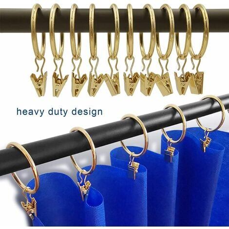 Accessoire Rideau Douche Salon CSPARKV 40 Pièces Anneaux Rideaux, Robuste Pince A Rideaux Anneaux Rideaux Avec Pince Antirouille Anneaux Pour Tringle A Rideau 32mm Diametre Interieur 87173214 Anneaux Rideau Avec Pince Ensemble complet : ce lot contient 32 anneaux de rideau dorés avec clips, parfaits pour les fenêtres décoratives, les rideaux épais ou les cintres. Rideau de la fenêtre Bagues avec Pinces (25mm) (16 Pack) - antirouille Si vous avez des questions ou des préoccupations sur nos produits, nous sommes à votre disposition pour vous aider., 2., Anneaux de rideau robustes et durables : ces anneaux de rideaux sont fabriqués en métal de haute qualité et sont recouverts d'un revêtement spécial qui empêche la rouille et garantit une longue durée de vie. Chaque anneau peut supporter jusqu'à 3 livres, tandis que les clips de serrage renforcés maintiennent les rideaux plus lourds en toute sécurité. Taille adaptée à de nombreuses tringles : les anneaux de rideau ont un diamètre intérieur de 1,25 pouces et conviennent aux tringles à rideaux jusqu'à 2,5 cm. Parfait pour une utilisation à la maison ou au camping pour fixer des lumières et d'autres objets. Idéal pour une utilisation dans différentes pièces telles que les salons, les chambres, les hôtels, les restaurants ou les cafés. Contenu : 32 anneaux de rideau en métal avec clips Si vous avez des questions ou des préoccupations sur nos produits, nous sommes à votre disposition pour vous aider. Avec une longueur totale de 6 cm (y compris les clips), ils sont travaillés avec précision et offrent une finition polie élégante.