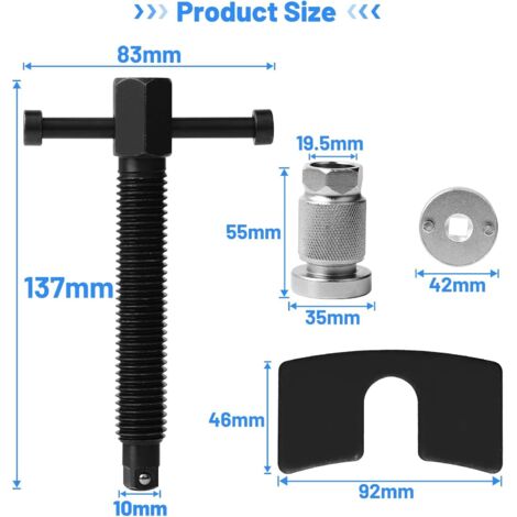 Il est fabriqué avec un savoir-faire raffiné et est plus résistant aux chocs et à l'usure que l'acier ordinaire. Repousse piston / écarteur d'étrier de frein à vis | XL Les pistons d'étrier de frein universels s'ajustent de manière sûre et précise, minimisant ainsi la possibilité de désalignement ou de glissement. Cela rend tout rapide, facile et sans tracas. 【Pratique et Efficace】 : outil d'enroulement de piston d'étrier de frein, utilisé pour installer des plaquettes de frein sur les voitures et camions nationaux et importés avec des étriers à piston de retour. Si vous débutez, cela peut prendre un peu de temps, alors ne vous inquiétez pas. L'outil de rembobinage du piston de frein convient à la plupart des véhicules équipés de freins à disque, tels que les voitures, les camping-cars, les SUV, les camions, etc. 【Applicable】: Cet outil d'enroulement d'étrier de frein à poignée est très approprié pour retirer ou installer des rotules, des joints universels, des goupilles de fixation de frein de voiture et d'autres raccords à sertir. 【Haute Qualité】: Fabriqué en acier 45#, il a une longue durée de vie, une dureté élevée et n'est pas facile à déformer. Nos produits sont également dotés de poignées ou de poignées antidérapantes, offrant un meilleur contrôle et réduisant les risques de dommages accidentels. Cet outil de rembobinage de piston de frein automobile est un outil indispensable pour quiconque effectue l'entretien des freins. TD® Repousse piston étrier de frein universel d'Outils kit voitures 21 Caché Roue Volkswagen Disque De Frein Spingi Pistone Pinza Freni COFFRET OUTIL UNIVERSEL REPOUSSE PISTON D'ETRIER DE FREINS A Disques 22 Pieces 88646840 Smart Tools Freni Repousse Piston Frein Arriere Amortisseur Avant La taille compacte rend l'outil de rembobinage du piston de frein léger, garantissant que le produit est facile à transporter et pratique pour les réparations à tout moment.
