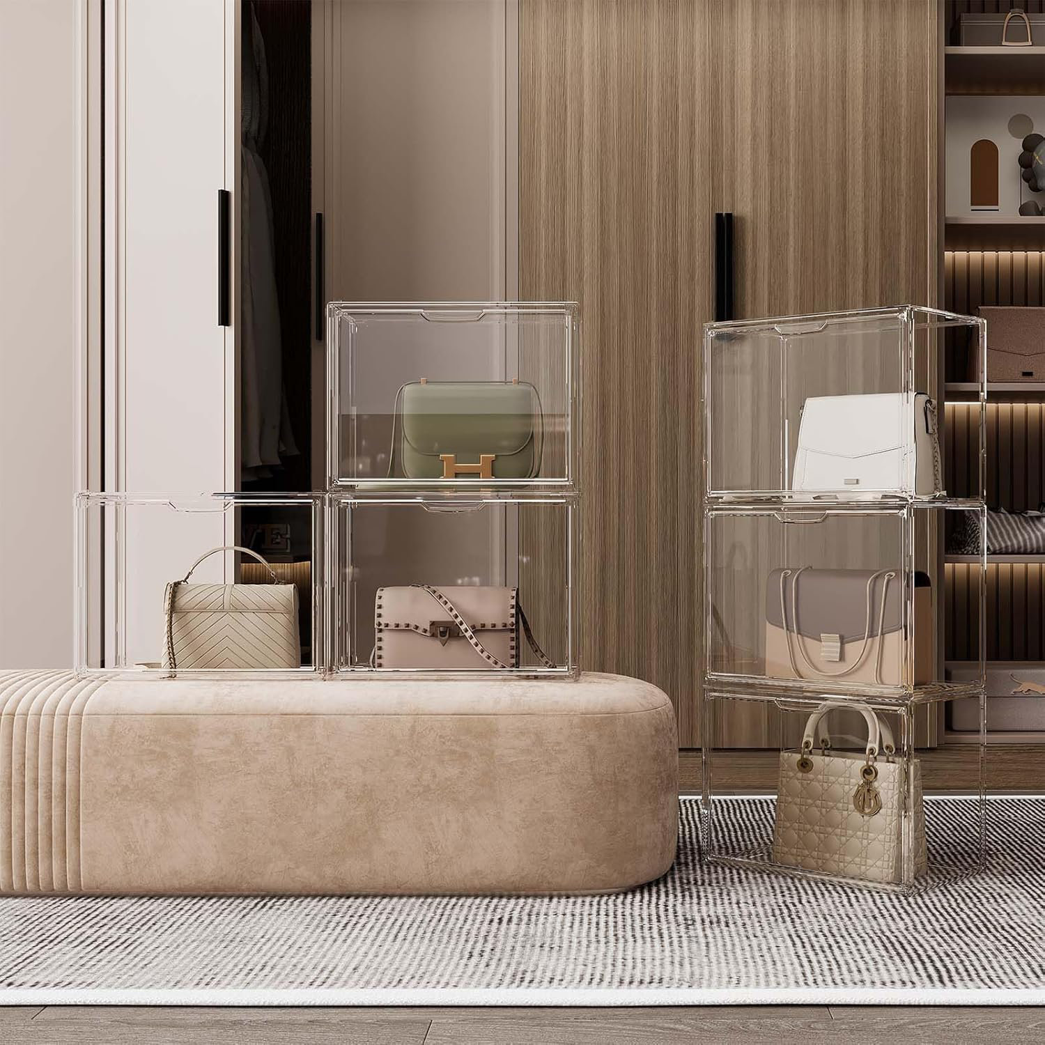 ♐Restez propre : notre organisateur de sac à main pour placard est spécialement conçu pour garder vos portefeuilles, sacs à main, pochettes et pochettes droits, en conservant une apparence bien rangée. Séparateurs d'étagères de garde-robe, séparateur d... – Grandado Conception utile avec un design pratique, notre organisateur de sac à main pour placard permet un accès et une mobilité faciles. Rangez sans effort votre placard avec cette solution peu encombrante. ♐Merveilleuse option de cadeau : rangez votre placard et impressionnez vos amis amateurs de sacs avec cet organisateur de sac à main pour placard. Cette solution stocke et affiche efficacement votre collection de sacs à main, sacs, pochettes, portefeuilles et bien plus encore, simplifiant ainsi l'organisation du placard. Il offre un accès et une visibilité faciles aux sacs à main, sacs, pochettes et portefeuilles. YOSOO tui de rangement pour sac à main transparent, organisateur de rangement pour sac à main ♐Conception pratique : grâce à sa conception pratique, notre organiseur de sac à main pour placard est le compagnon idéal pour les personnes toujours en déplacement. Cet organisateur de sac à main de placard est fabriqué en matériau ABS durable, garantissant une utilisation à long terme. ♐Matériau : fabriqué en ABS avec des surfaces lisses pour un nettoyage sans effort, cet organisateur de sac à main pour placard élève votre jeu de rangement tout en préservant vos sacs et placards. Housse de rangement,Sac à main vert pliable en Polyester pour femmes... Rack Dorganisateur De Cintre De Vêtements 34 Grilles De Cloison De Sac À Main Tableau De Partition, Organisateur De Sac En Acrylique Pour Lorganisation Du Placard, Organisateur De Rack De Bourse, Conception Spécification: Matériel:ABS Poids : 400g/500g Taille du produit: modèle A environ 32 cm/12,6 pouces modèle B environ 42 cm/16,54 pouces Liste des paquets : Organisateur de sac à main pour placard*1