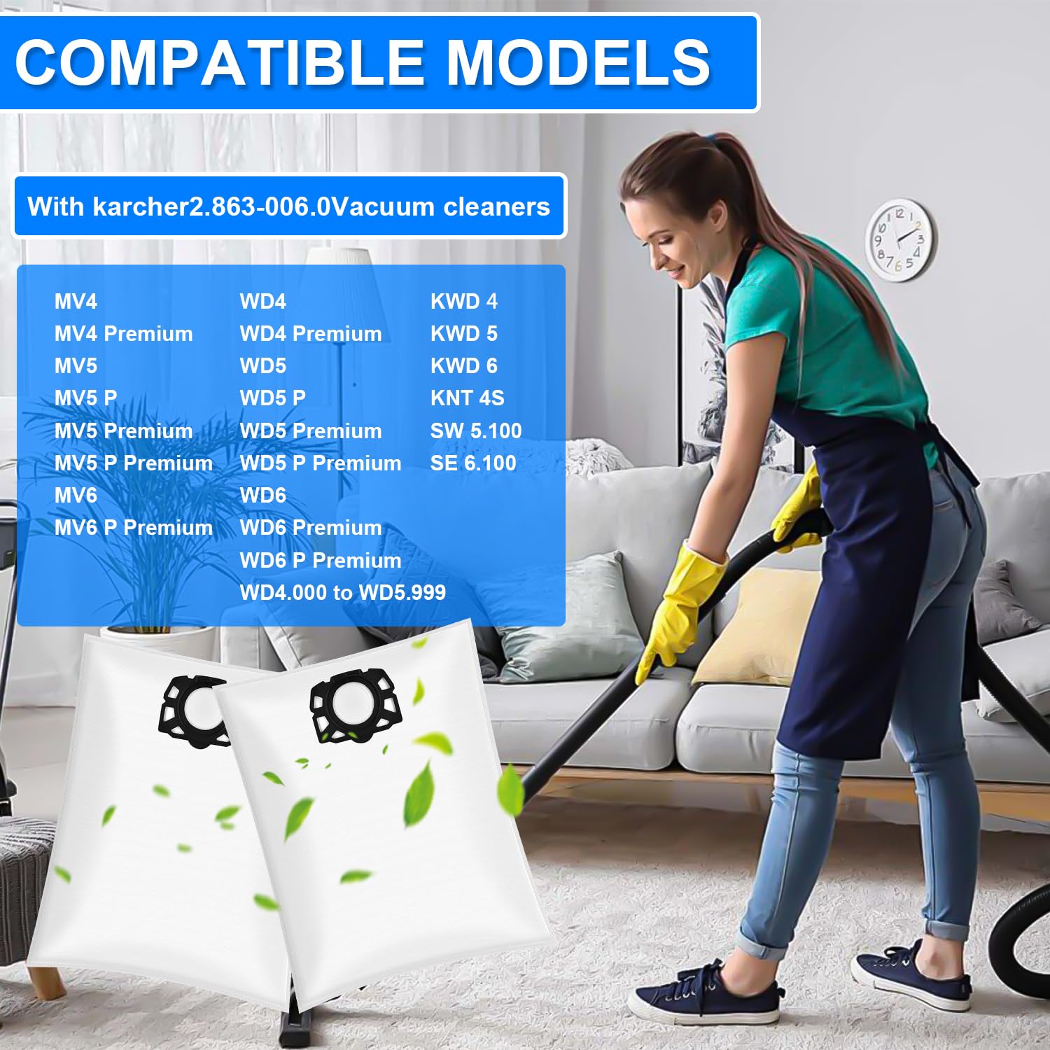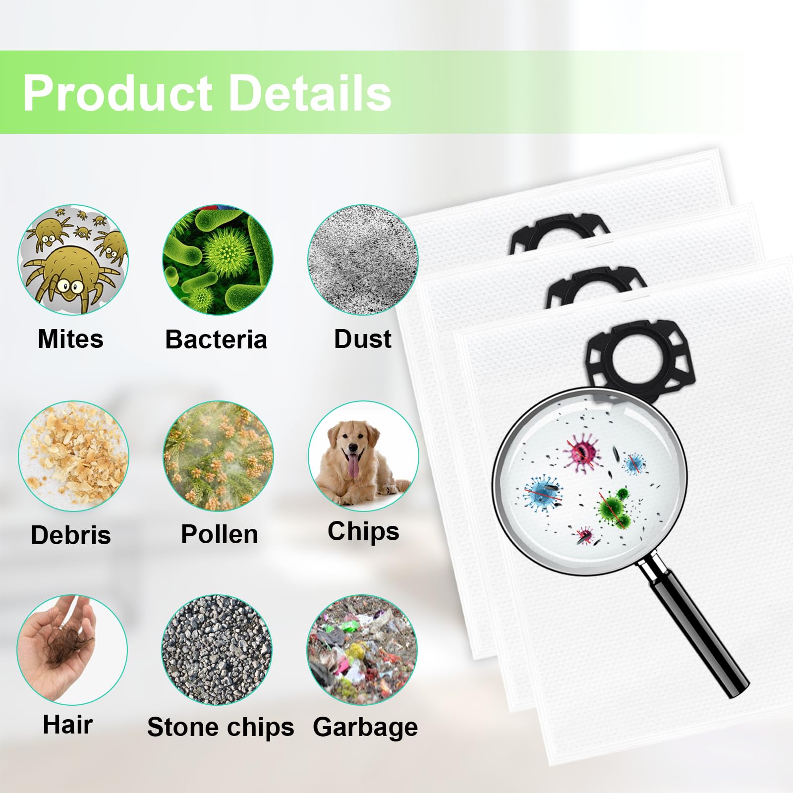 4x Original Kärcher Staubsaugerbeutel - KFI 487, WD4/WD5/WD6 FLYE | 28630060 Ensemble d'une valeur exceptionnelle :Sac aspirateur pour karcher Le kit comprend 16 sacs de rechange KFI 487, suffisants pour une utilisation prolongée. Aspirador Karcher Kaiyaner 15 Unidades Bolsas Aspiradora Para Karcher WD4 WD5 WD6 WD5P WD6P MV4 MV5 MV6 KFI 487 Con 2 Filtros KFI 4410 Accesorios Piezas Repuesto 2.863-006.0 Y 2.863-005.0 Bolsas De Filtro Para Limpia Tapicerias Karcher Il est recommandé de les remplacer tous les 2 à 3 mois afin de maintenir des performances optimales de l'appareil. Résistance à la déchirure durable :Le tissu non tissé de haute qualité et la plaque de recouvrement en plastique robuste offrent une résistance à la déchirure et une étanchéité exceptionnelles, contenant de manière sûre la poussière et les débris sans risque de fuite. Installation et remplacement simples :La conception pratique à rabat permet un retrait et un remplacement rapides, garantissant une utilisation hygiénique et protégeant le moteur de l'aspirateur de la contamination par la poussière. The filter bags were specially developed for the Kärcher wet and dry vacuum cleaners WD 4–7, KWD 4–6 and MV 4–6. They can also be used for the SE 5, SE 6, SE 5.100 and SE 6.100 spray extraction cleaners from Kärcher. A total of four bags are included in the scope of supply Pack of 12 Vacuum Cleaner Bags White for Kärcher WD4, WD5, WD6 Fleece Filter Bags KFI 487, Dust s'il vous plaît assurez - vous que cela ne vous dérange pas avant d'acheter, merci Large compatibilité :Aspirateur pour karcher Compatible avec les séries Kärcher WD4, WD5, WD6, WD5P, WD6P, MV4, MV5, MV6 et WD4., 000-WD5., 999., Compatible avec la référence de pièce détachée 2., 863-006., 0, offrant des fonctionnalités équivalentes à celles de l'équipement d'origine. spécifications: couleur:Blanc Matériel:Tissu non tissé taille:30*23*10cm contenu de l'emballage: Veuillez noter que des erreurs de 0 à 1 cm peuvent survenir en raison de la mesure manuelle.