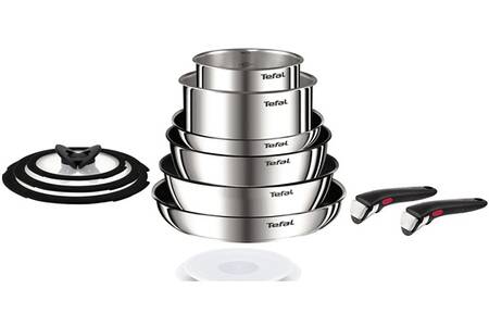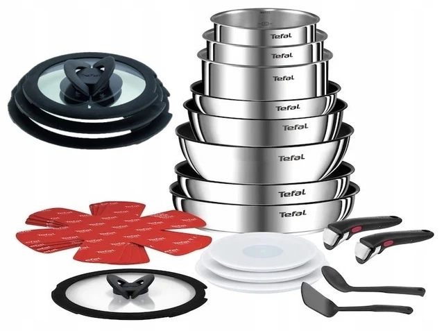 Batterie de Cuisine Ingenio Emotion 10 Pièces à -63 Particulièrement pratique : toutes les pièces passent au lave-vaisselle (sauf les poignées amovibles), et les casseroles et poêles passent au four (sans poignées et couvercles en verre). Tefal Ingenio Inox TEFAL L925SM14 Ingenio Emotion Batterie De Cuisine 22 P, Induction Poignées Amovibles Rangement Compact L'ensemble comprend des poêles de 22, 24 et 28 cm ainsi que des casseroles de 16, 18 et 20 cm de diamètre, chacun des couvercles en verre assortis et 2 poignées amovibles. Utilisation polyvalente : utilisable de la plaque de cuisson au four au réfrigérateur, avec poignées amovibles pour un rangement peu encombrant Facile d'entretien : passe au lave-vaisselle (sauf les poignées), passe au four jusqu'à haute température (sauf poignées et couvercle en verre) Poêles et casseroles anti-adhésives Ingenio | Tefal Tefal Ingenio Preference Lot 3 pièces, Poêles 24/28 cm + poignée amovible, Empilable, Acier inoxydable - Maison L'ensemble est compatible avec tous les types de plaques de cuisson courantes, y compris l'induction, le gaz, l'électrique et la céramique. ENSEMBLE COMPLET : ensemble de 11 pièces Tefal Ingenio Emotion composé de 3 poêles, 3 casseroles, 3 couvercles en verre et 2 poignées amovibles Les poêles convainquent par leur revêtement antiadhésif Titanium Force de qualité supérieure pour des résultats de cuisson optimaux.
