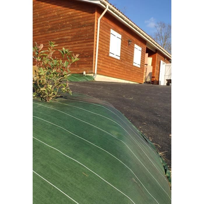 Préserve le taux d’humidité du sol / Évite les chocs thermiques / Permet le passage de l'eau et de l'air Toile de paillage tissée professionnelle 130g/m2 ; bien plus résistant que les 100g/m2 Ecologigue, évite les mauvaises herbes, plus besoin de desherbant ! Longueur 5m / Largeur 3,3m / Coloris Marron / 130gr/m2 / Grande Densité linéaire : ISO 2060 / Résistance mécanique : ISO 12236 / Résiste aux UV Toile de paillage pour la serre Paillage Professionnel Durable Toile De Paillage 130g/m2 Longueur 10m / Largeur 3,3m / Coloris Toile Paillage Tissée 130g/m2 En empêchant la pousse des mauvaises herbes, elle facilite l'entretien de vos espaces extérieurs tout en préservant la qualité du sol. Résistante et perméable à l'eau et à l'air, cette toile de paillage est conçue pour durer dans le temps