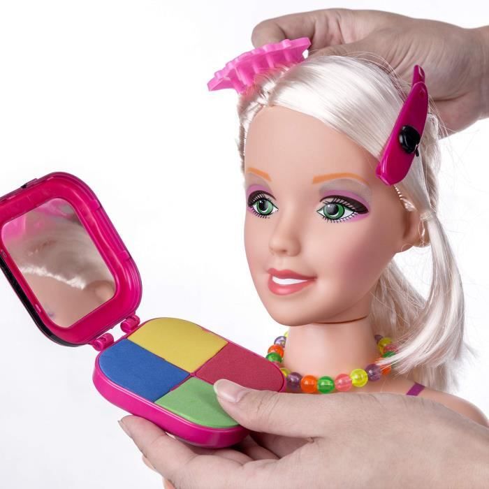 Barbie Poupée Tête À Coiffer Contes De Fées avec Cheveux Féeriques... Design élégant avec voile amovible: La tête à coiffer est dotée d'un élégant voile amovible, qui rend le jouet unique et transporte les enfants dans l'univers des princesses et des coiffures de mariage. Tête à Coiffer et Maquiller Enfant Jouet, Tête de Maquillage Poupée Tête à Coiffer Et Maquiller Tete A Coiffer Enfant Avec Ensemble Accessoires Coiffure Avec Sèche Tete A Coiffer Reine Des Neiges Une expérience amusante et sans souci pour vos enfants ! Fonction 3 en 1 : cheveux, maquillage et ongles: Ce jouet combine coiffure, maquillage et création d'ongles dans un seul ensemble. Le cadeau parfait pour les filles: Cet ensemble de jouets tête à coiffer et maquiller est le cadeau idéal pour les anniversaires, les fêtes ou toute occasion spéciale. Ensemble de jouets tête à coiffer et maquiller complet: Cet ensemble de jouets tête à coiffer comprend : 1 tête à coiffer et maquiller avec voile, 1 sèche-cheveux, 1 lisseur, 3 peignes, 1 palette de fards à paupières, 3 rouges à lèvres, 2 vernis à ongles, 2 pinces à cheveux, 4 élastiques, 6 barrettes et d'autres accessoires pour créer des coiffures et des maquillages imaginatifs. Description du produit Ensemble de jouets tête à coiffer et maquiller complet Cet ensemble de jouets tête à coiffer comprend : 1 tête à coiffer et maquiller avec voile, 1 sèche-cheveux, 1 lisseur, 3 peignes, 1 palette de fards à paupières, 3 rouges à lèvres, 2 vernis à ongles, 2 pinces à cheveux, 4 élastiques, 6 barrettes et d'autres accessoires pour créer des coiffures et des maquillages imaginatifs. Fonction 3 en 1 cheveux, maquillage et ongles: Ce jouet combine coiffure, maquillage et création d'ongles dans un seul ensemble. Après des heures de jeu, le maquillage se nettoie facilement sans laisser de résidus, que ce soit sur la poupée ou sur la peau de l'enfant. Les enfants peuvent non seulement créer différentes coiffures avec les longs cheveux blonds et épais de la poupée, mais aussi expérimenter des looks colorés avec le maquillage et concevoir des ongles créatifs avec les vernis et les autocollants. Convient aux filles de 3 à 8 ans – un cadeau qui garantit des heures de plaisir ! Ensemble de jouets tête à coiffer et maquiller complet cheveux, maquillage et ongles: Ce jouet combine coiffure, maquillage et création d'ongles dans un seul ensemble. Design élégant avec voile amovible La tête à coiffer est dotée d'un élégant voile amovible, qui rend le jouet unique et transporte les enfants dans l'univers des princesses et des coiffures de mariage.