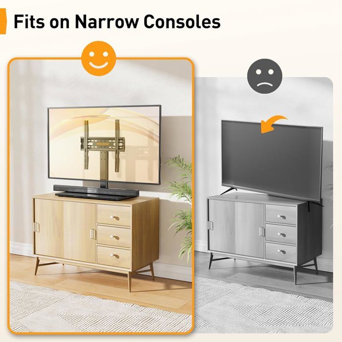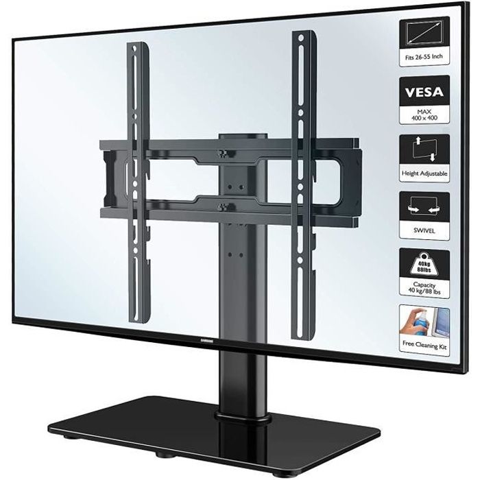 Matériaux haut de gamme et structure stable garantissent une stabilité et durabilité exceptionnelles. Support TV universel pivotant pour téléviseurs LCD LED de 26 à 55 pouces, hauteur réglable, support TV pour salon, chambre à coucher Voir plus de détails Vous avez des questions à propos des informations du produit en français? Contactez-nous Signaler un problème avec ce produit Verrou de sécurité : fixe solidement la télévision, évite chutes, assure protection fiable Avec des pieds en caoutchouc antidérapants, il empêche le balancement/glissement, maintenant la télévision solidement positionnée. Sa fonction de pivotement ±35° permet une rotation fluide gauche-droite, améliorant l’usage quand vous partagez du contenu ou ajustez l’angle de vision. RÉGLAGE FLEXIBLE - Ce pied TV universel pivotant a un réglage de hauteur à 6 niveaux : ajustez facilement la TV selon votre position assise pour éviter la fatigue cervicale. LARGE COMPATIBILITÉ - Ce support TV sur pied adaptable sur table convient universellement aux téléviseurs plats/incurvés de 26–55 pouces, couvrant la plupart des modèles LCD, LED, OLED et plasma. RFIVER Support TV sur Pied avec Base en Verre Trempé, Hauteur Réglable ROBUSTESSE ET STABILITÉ - Fabriqué en acier résistant, ce support pour TV a une base de 18 mm d’épaisseur (380mm x 230mm). Gestion des câbles : organise et cache câbles TV, évite enchevêtrements, garde l'espace propre La gestion des câbles cache les fils en désordre, gardant votre setup ordonné et alliant style à la praticité. Ped TV sur Table Meuble TV avec Support Réglage de la Hauteur pour... Support Tv Hauteur Réglable BONTEC Support TV Sur Pour Télévisions De 26 à 55 Pouces LCD Pied TV Universel Pivotant DESIGN ÉLÉGANT ET MODERNE - Le pied de télé universel a une base en bois de chêne blanc lisse, apportant de l’élégance à votre espace et s’intégrant parfaitement dans une décoration moderne, minimaliste ou classique.