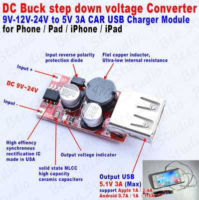 Avec port USB, avec puce d'identification de charge rapide, compatible avec Android et iPhone , Taille : 63*27mm Tension de fonctionnement : DC 9V-36V ; Tension de sortie : 5., 2V/5A/25W Une tension d'entrée différente produira une puissance différente : entrée DC 9-24V, sortie 5., 2V/6A/30W ; entrée DC 24-32V, sortie 5., 2V/5A/25W ; entrée DC 32-36V, sortie 5., 2V/3., 5A/18W. Convertisseur Buck 25W IHaospace 2 Pcs 24V 12V To 5V 5A Voltage Converter, DC DC Converter 12V Convertisseur DC 12V To 5V Dc To Dc Converter 12v To 5v Clearance Sale JZK® 24V / 12V à 5V 5A Power Buck odule DC-DC Enseble de Puissance à... Paquete de 2 unidades DC 12V/24V a 5V USB C Buck Converter 3A 15W Tipo
