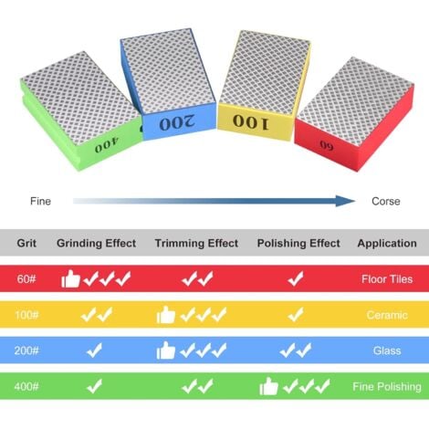 chaque grains est conçu pour offrir des performances optimales pour des matériaux spécifiques, garantissant une finition lisse et impeccable à chaque fois. légers et ergonomiques, ces coussinets vous aident à résoudre rapidement les problèmes courants tels que les bavures et les bordures. Matériau de haute qualité] Les tampons de polissage manuels diamantés sont composés d'un placage diamanté super abrasif et d'une éponge hautement élastique, ce qui offre une bonne flexibilité et une longue durée de vie Tampons à mains diamantés pour polissage manuel à sec/humide Bellux [Matériau de bonne qualité] Les tampons de polissage manuels en diamant sont fabriqués à partir de diamant à haute résistance et éponge hautement élastique garantissant une durabilité et des performances durables. Almohadillas De pulido De diamante flexibles usadas en seco, herramientas De mol plus le sable est fin, meilleur est l'effet de meulage, tandis que plus le sable est grossier, meilleur est l'effet de polissage. Idéal pour le polissage de la pierre, la coupe des carreaux, la coupe des bavures de verre, le polissage et la rénovation des métaux ainsi que l'ébavurage du bois. Paquet De 4 Tampons De Polissage Diamantés à La Main, Verre, Tampons De Polissage Diamantes A La Main Verre Tampons De Meulage Pour Carreaux De Ceramique 4 Niveaux De Rugosite 60100200400 Grains Mohs 10 Durete 86826325 que vous soyez un bricoleur ou un professionnel, ces tampons sont conçus pour rendre votre travail plus facile et plus efficace. leur grande élasticité et leur durabilité en font un outil indispensable pour ceux qui cherchent à obtenir une finition professionnelle sur leurs projets. [Conception conviviale] La conception à rainure latérale améliore la commodité et la facilité d'utilisation.