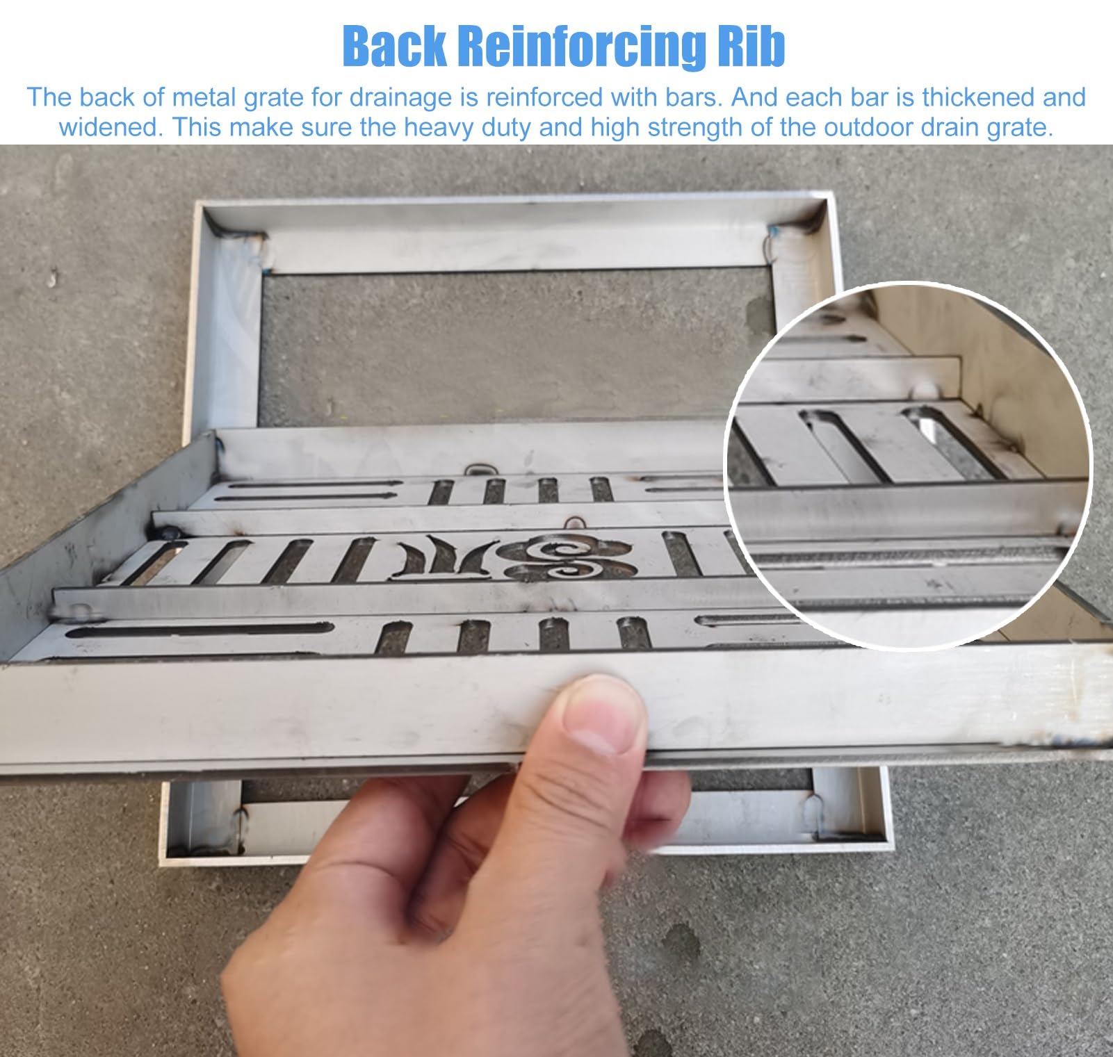 Caniveau Exterieur Caniveau de Drainage Français 3,5x3 4x4 5x3 5x5 6x4... 【 Nervure de renforcement arrière 】 L'arrière de la grille métallique pour le drainage est renforcé par des barres. Canaleta de Drenaje Canal De Drenaje para Patio De Adoquines, 17 22 Cm Grille Caniveau Nicoll Grille De Drainage Couverture De Grille De Drainage De Canal De Patio/cour/cu00f4tu00e9 De Maison/terrasse/porche, Grille De Drainage De Tranchu00e9e Robuste Avec Points Antidu00e9rapants, Plaque/s Caniveau Exterieur ☞ Surface plane pour assurer un passage rapide des fauteuils roulants. Et chaque barre est épaissie et élargie. 【 Taille personnalisable 】 La taille de notre couverture d'égout prend en charge la personnalisation, veuillez nous contacter si vous en avez besoin, nous vous fournirons des solutions satisfaisantes. 【Grille en acier inoxydable】 Ce couvercle de drain de cour est en acier inoxydable, durable, résistant aux intempéries, forte résistance à l'abrasion, pas facile à casser. L'allée de votre garage, votre patio, votre cour de maison ou votre terrasse seront-ils couverts de pluie lorsqu'il pleut abondamment ? Si oui, je pense que vous avez besoin d’un drain de tranchée capable de drainer efficacement. ☞ Couleur : Argent☞ Personnalisable : Oui☞ Hauteur : 2 cm ( 3/4)☞ Longueur x Largeur : 15 cm x 15 cm( 5 7/8 x 5 7/8), 20 cm x 20 cm( 7 7/8 x 7 7/8), 25 cm x 25 cm( 9 7/8 x 9 7/8 ), 30 cm x 30 cm ( 11 3/4 x 11 3/4 )✿ Fonctionnalité☞ Fabriqué en acier inoxydable de haute qualité, robuste et durable. ☞ Installation facile et rapide. ☞ Empêche les feuilles et les débris de boucher le drain. il est inévitable qu'il y ait de légères erreurs et différences de couleur, veuillez vous référer au produit réel. ☞ Pour la maison et le commerce. ✿ Spécification☞ Matériau : acier inoxydable.
