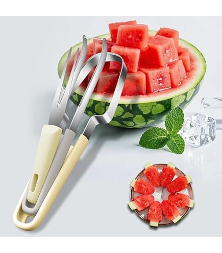 FACILE À UTILISER : Fourchette à pastèque Trancheur Design ergonomique pour une prise en main confortable, Coupe facilement la pastèque en carrés et rectangles, Prenez-le directement des cubes de pastèque et placez-le sur l'assiette, ce qui est rapide et pratique, il est donc facile de profiter de la pastèque. UTILISATION DANS PLUSIEURS SECENARIES : cet outil de coupe de pastèque ne convient pas seulement aux pastèques, aux papayes cantaloup, aux fruits du dragon, etc. Le coupeur de glace à la pastèque vous aide à faire de la glace à la pastèque rapidement. Nos top 10 des Trancheuse Pasteque en France - Décembre 2025 TRANSPORTABLE ET COMPACT : 3-en-1 Couteau à fruits en acier inoxydable Livré avec une fonction légère et compacte, Un ensemble d'outils 3-en-1 Composition, Lorsqu'il n'est pas utilisé, se replie pour économiser de l'espace de rangement pour la maison ou le camping en plein air. Trancheuse à pastèque en acier inoxydable de , cou... – Grandado Accessoire Pique-nique Fruits Coupe-pastèque 3 En 1, Outil De Coupe De Fruits En Acier Inoxydable Amélioré 2024 Avec Fourchette, Coupe Et Service Rapidement De La Pastèque (2 Pièces Coupeur Pastèque Portable Coupe-fruits - Gels coupe-fruits pour couper la saucisse, Multi...