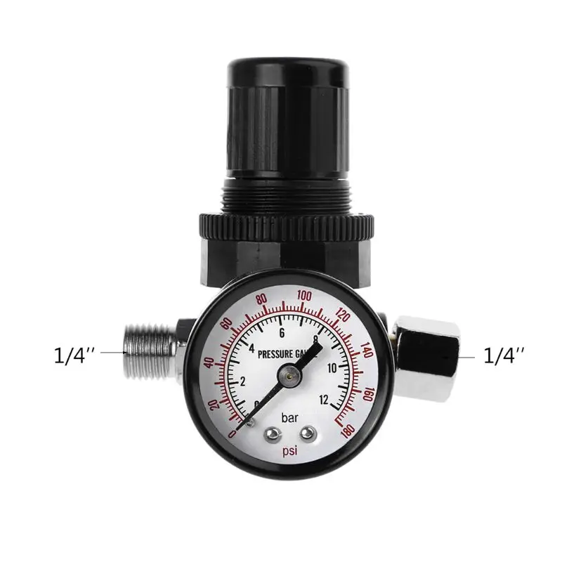 Unité AFFFR de préparation d'air pneumatique de filtration puissante - Régulateur de filtre à air 4 en 1 combiné avec manomètre pour machines d'automatisation des systèmes d'air comprimé - Acheter un filtre Design compact : avec des dimensions de 85 x 70 x 40 mm, ce régulateur de pression pour compresseur d'air est compact et peu encombrant. Différence de filetage NPT, NPS, FIP, MIP, MPT et FPT - Ningbo VPC... Jauge numérique de gonflage de pression d'air,... – Grandado * Type de port : 6,35 mm NPT *Couleur : noir. Il peut facilement s'adapter dans les espaces restreints sans compromettre la fonctionnalité. Réducteur de pression 1/4" Preciva - Régulateur de pression - Valve de L'entrée et la sortie sont 1/4 NPT, une connexion sûre et fiable. Caractéristiques : *Fabriqué en matériau solide et * Ce régulateur d'air économique dispose d'un port de fonctionnement de 6,35 mm et est conçu pour réguler la pression d'air entre 20 et 100 PSIG. * Ce qui distingue ce climatiseur des autres sur le marché, c'est son design pratique à 4 ports. * Plage de pression réglable : 0,5 ~ 8,5 kgf/cm2., * Dimensions : 85 x 70 x 40 mm. Diamètre de l'adaptateur : environ 11 mm. 【Régulation précise de la pression】Doté d'un port de fonctionnement de 6,35 mm NPT, ce régulateur d'air économique est conçu pour réguler la pression de l'air entre 20 et 100 PSIG, offrant un contrôle précis de la pression pour diverses applications. Contenu de l'emballage : 1 régulateur de pression pour compresseur d'air. *Le kit comprend tous les éléments essentiels nécessaires pour une installation et une utilisation faciles : régulateur, manomètre, support de montage mural et écrous de montage de panneau.