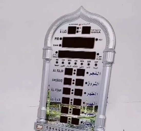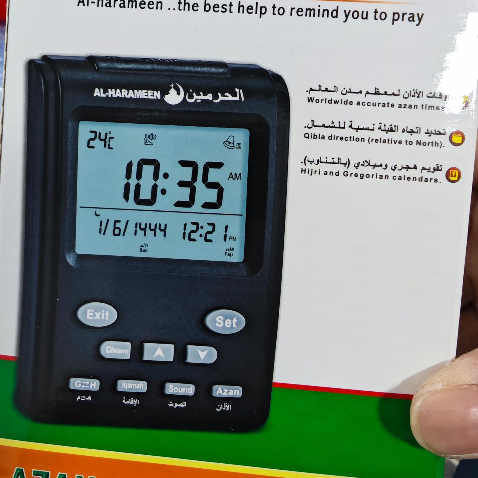 Remarque : Les mesures étant prises à la main, les tailles indiquées peuvent varier de 1 à 2 cm. Horloge AlFajr table avec appel à la prière (azan) - Noir AlFajr CT11 Livré avec Makkah Prayer Music, fonction Azan for Time Reminder, fonction heure, fonctions d'alarme (alarme unique/alarme périodique) pour envoyer un bip d'alarme. Fonction répétition, 5 minutes, fonction température, Celsius, heure (DST) 12/24 heures et rétroéclairage Difficile et fragile, forte résistance à la chute Horloge de prière ha-3011 heure, date, jour, jour de la semaine, fonction calendrier hijri, fonction heure du monde Difficile et fragile, forte résistance aux chutes. Klok Adhan - Horloge de prière Azan - Islam - Klok numérique Azan Contenu de la livraison : 1 horloge de prière. Fonction répétition, fonction répétition de 5 minutes, fonction température, Celsius, heure (DST) 12/24 heures et rétroéclairage. Peut être programmé pour un rendez-vous spécial. Horloge numérique islamique, alarme de prière, LCD... – Grandado Heure Prière Azan écran Lcd Horloge De Prière - DILWE - Azan - Affichage Numérique LED - Décoration Alarme Prière écran Lcd Caractéristiques techniques : Métal Dimensions : environ 130 x 98 mm.