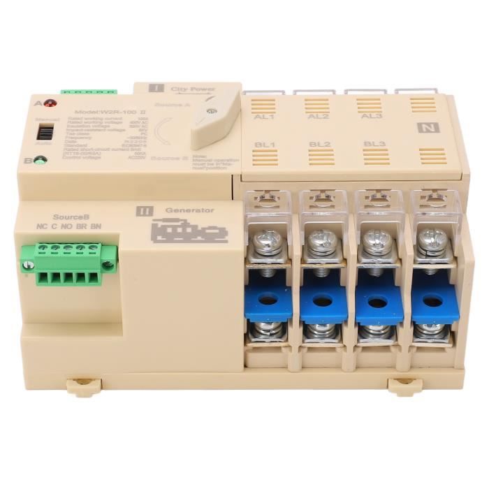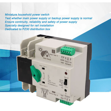 Il peut être utilisé non seulement sur les générateurs, mais également sur les onduleurs et les onduleurs, et peut être connecté à l'énergie solaire et photovoltaïque. S'il y a une anomalie dans l'alimentation normale, cet interrupteur peut passer à l'alimentation électrique en peu de temps et fonctionner immédiatement pour assurer la continuité de l'alimentation. 【Sûr et】 Ce produit est fabriqué en matériau ignifuge, avec une bonne performance d'isolation, une résistance aux hautes températures et une durabilité. Il garantit une alimentation électrique immédiate et continue. Commutateur de transfert automatique à double alimentation : le commutateur de transfert automatique à double alimentation permet une commutation fluide entre deux sources d'alimentation, une alimentation ininterrompue en cas de pannes soudaines ou de pannes de courant. Commutateur Automatique À Double Alimentation, Commutateur De Transfert De Puissance Ac 220V 8Kv... Caractéristiques : *Tension nominale : 400 V. Commutation milliseconde : avec un temps de réponse exceptionnellement rapide, ce commutateur transfère rapidement l'alimentation à la source lorsque des anomalies se produisent dans l'alimentation principale. qui peuvent être utilisés en toute sécurité. Contenu : 1 x commutateur de transfert automatique double puissance. Pwshyi Coutateur Autoatique 220v, Coutateur de Transfert Autoatique à Double Alientation Commutateur de transfert automatique à double alimentation : le commutateur de transfert automatique à double alimentation est utilisé pour basculer entre deux sources d'alimentation, y compris la source d'alimentation principale et la source d'alimentation de veille. 【Large application】: ce produit est une version photovoltaïque de l'interrupteur automatique double puissance. *Courant nominal : 125 A/100 A/80 A., *Pôle : 2P/4P., *Dimensions : voir photo. Il dispose également d'une variété de dispositifs de sécurité tels que court-circuit, surcharge, sous-tension, protection incendie, etc. Basculement Onduleur Solaire INTERRUPTEUR DE TRANSFERT De Puissance Double Disjoncteur De Haute Disjoncteur Automatique Photovoltaïque Certifié CE 【Service】La satisfaction du client est notre priorité absolue. Le produit a passé la certification CE et peut être utilisé en toute confiance.