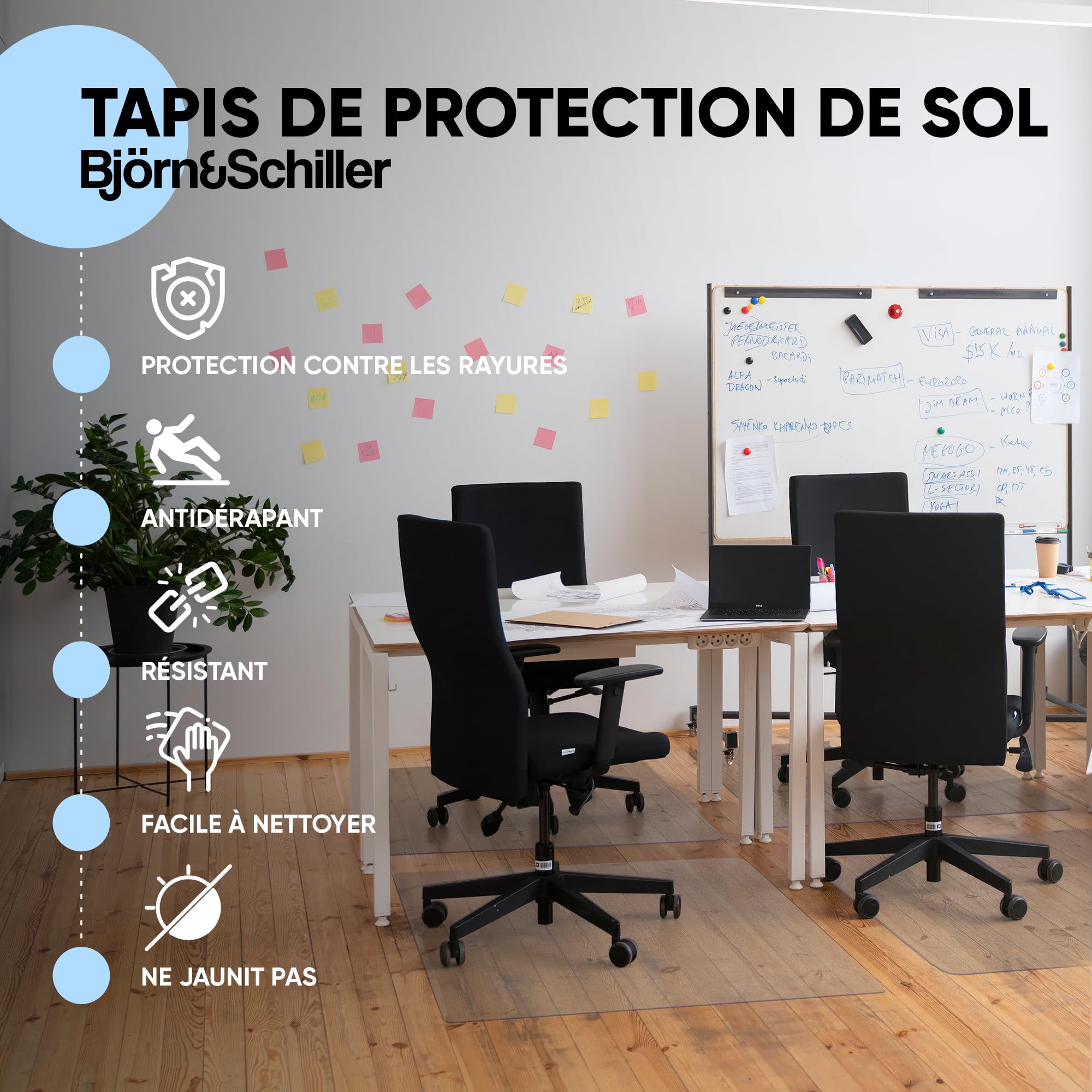 Mais aussi comme tapis de peinture pour les enfants ou comme base pour les plantes dans votre salon/terrasse, notre tapis de protection universel est idéal. Le tapis de protection de sol blanc laiteux de 1,8 mm d'épaisseur a une surface très résistante et est la protection idéale pour votre sol. Protection pour sols stratifiés et tapis : Le tapis de protection de sol anthracite est idéal pour protéger le sol contre l'usure et les rayures. Il suffit d’un seul passage. Tapis de protection de sol contre les rayures Que ce soit une chaise de bureau ou une chaise haute dans la cuisine, au quotidien, vous ne pouvez pas éviter de pousser les chaises vers l'avant et vers l'arrière, ce qui entraîne souvent des rayures sur le sol. Le tapis de chaise de bureau rembourré. Angles arrondis pour plus de sécurité Nos tapis de protection du sol ont bien sûr été conçus dans un souci de sécurité. en tant que tapis de base. Facile à entretenir Le tapis de protection pour chaise de bureau est extrêmement facile d'entretien. Le tapis pour chaise de bureau est respectueux de l'environnement et 100 % recyclable. Tapis Sol Pour Chaise Bureau Tapis De Protection Pour Chaise Roulante De Bureau, Anti-rayures, Tapis De Sol De Jeu D'intérieur Et D'extérieur, Tapis De Sol Antidérapant, 6 Mm, 100 X 120 Cm, Beige Tapis Polypropylène 100x120 Cm Tapis Pour Chaise De Bureau - Price TOP Polyvalent : Peut être utilisé comme support pour chaise de bureau, tapis de barbecue, protection du sol ou comme tapis de protection pour vos appareils de fitness. Protection pour sols stratifiés et tapis : Le tapis de protection de sol anthracite est idéal pour protéger le sol contre l'usure et les rayures. Protégez votre stratifié, le parquet, le carrelage ou même un plancher en bois dur avec ce tapis de protection Le matériau est uniquement composé d'hydrogène, de carbone et ne contient pas de substances nocives. Protégez votre stratifié, le parquet, le carrelage ou même un plancher en bois dur avec ce tapis de protection. Informations sur le matériau Nos tapis de protection de sol sont conformes aux directives CE 79/831 et 83/487 et ne sont donc pas nocifs pour la santé. Tapis de sol Pas Cher | Bureau Vallée Si nécessaire, essuyez simplement le tapis de protection de sol anthracite avec un chiffon humide. Exemples d’utilisation Le tapis de protection pratique est polyvalent. Que ce soit sur de la moquette ou du parquet, comme protection du sol, le tapis de chaise de bureau antidérapant anthracite est idéal. Protégez votre sol avec un tapis de protection de sol, qu'il s'agisse de carrelage, de stratifié ou de parquet.