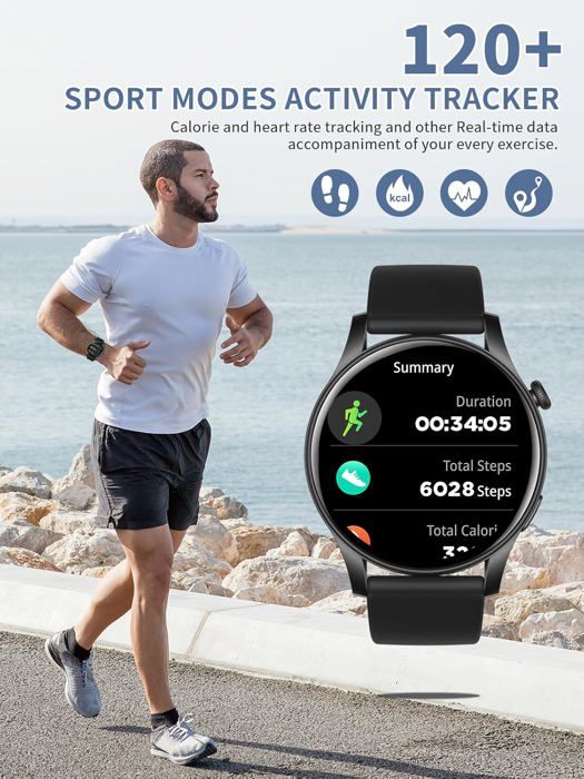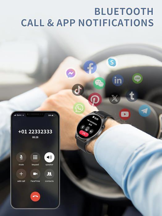 🏃♂️ 130+ Modes Sportifs et Étanchéité IP68 : Avec plus de 130 modes (yoga, course, marche, etc. Montre Connectée Sport Amoled Montre Connectée Femme Homme, 1.43'' HD Smartwatch Avec Appel Montre Connectée AMOLED 🖥️ Écran AMOLED HD de 1,43 Pouce : Cette montre connectée est dotée d’un écran rond AMOLED HD (466 × 466) aux couleurs vives et à la luminosité réglable, offrant une excellente lisibilité en toutes circonstances. Son étanchéité IP68 la rend résistante à la sueur et à la pluie, idéale pour un usage quotidien ou en extérieur (hors natation et sauna). Toutes les données sont accessibles via l’appli FitCloudPro pour mieux comprendre votre santé au quotidien. ❤️ Suivi de Santé Complet : Cette montre connectee mixte intègre un capteur PPG performant pour surveiller automatiquement la fréquence cardiaque, l’oxygène sanguin et le sommeil. 📞 Appels Bluetooth et Notifications Intelligentes : Cette montre connectée homme dispose d’un haut-parleur puissant et d’un micro haute résolution. 🔋 Autonomie Longue & Lampe Torche LED : Grâce à sa batterie haute capacité de 660 mAh, cette montre homme se recharge en 2,5 h pour offrir jusqu’à 60 jours en veille et 15 à 20 jours en usage normal. ) en temps réel, avec alertes par vibration pour ne rien manquer, même en déplacement. Le verre anti-rayures protège l’écran pour un usage fluide et durable. Vous recevez aussi vos SMS, rappels et notifications d’applications (WhatsApp, Facebook, Instagram, etc. Sa lampe LED latérale éclaire plus de 2 heures, parfaite pour le sport nocturne, les activités extérieures ou les urgences. 1,96 AMOLED Montre Connectée Homme avec Appel Bluetooth 5,2 Connectée en Bluetooth à votre smartphone, elle permet de passer et recevoir des appels directement depuis la montre.