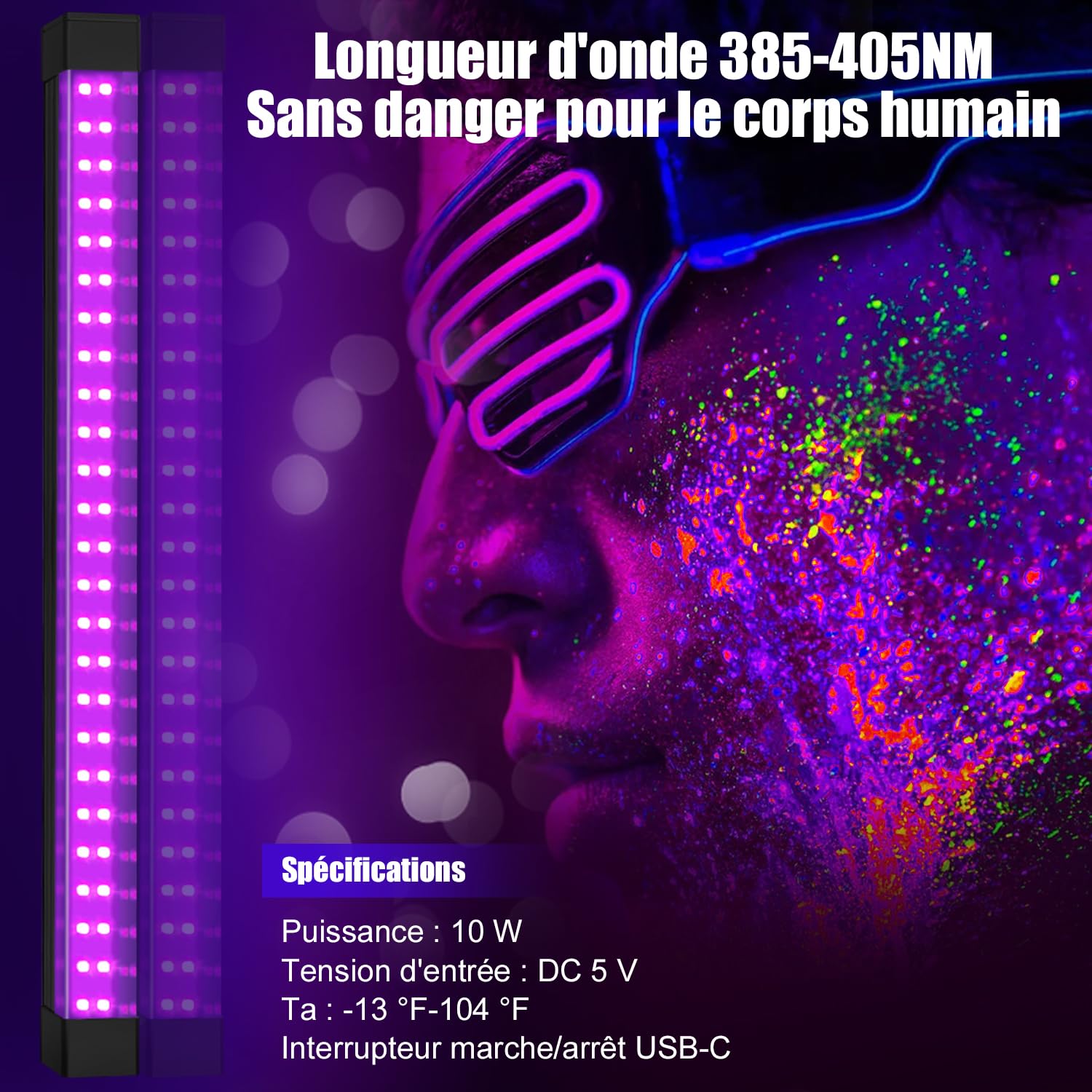 Location Barre Led UV lumière noire avec Trépied - Rennes Evenement Qualité et sécurité haut de gamme : Le Uv Led Tube Lumière Noire équipé de LED UV 100 % haute qualité offrant d'excellentes performances d'éclairage. Lumière Noire Portable 10W Neon Lumiere Noire Lot 2 Bandes LED Lumière Noire UV 10W - Tube USB 28cm Pour Fête Lampe Fluorescente Fête Halloween Projecteur Led Rechargeable Lumiere Noire Soiree Fluo soit dans un salon ou une salle de fête, laRechargeable Tube Led Lumière Noire effet saisissant et produit l'effet de lumière noire souhaité. Durée de vie et efficacité énergétique : Les Lumiere Noire Soiree Fluo offrent une longue durée de vie et sont également économes en énergie. Barre LED UV phosphorescente : La Lumiere Noire Soiree Fluo brille dans le noir, notamment avec les objets de couleur néon, les peintures corporelles UV et les matériaux fluorescents visibles. IBIZA Light BIGPAR-16RGBW4UV projecteur PAR Led 16x 4W RGBW 4x 30W... Spot LED Lumière Noire COB 15W UV - déguiz-fêtes Spécifications du produit : Matériau : Aluminium et polycarbonate transparent Couleur : Noir Dimensions : 32 x 12 x 6 Poids : 380 g Capacité de la batterie : 2600 mAh Puissance : 5 W Longueur d’onde : 395–405 nm, classe UV-A Contenu de la boîte : 2 Uv Led Tube Lumière Noire 2 câbles USB 4 vis de fixation 4 autocollants double-face De plus, le Uv Led Tube Lumière Noire système de refroidissement avancé assure une sécurité tactile et une meilleure dissipation de la chaleur pour une lumière UV stable. 3 modes d'éclairage réglables : Uv Led Tube Lumière Noire Choisissez parmi 3 modes polyvalents pour répondre à vos besoins : Uv Led Tube Lumière Noire tube de lumière noire avec une luminosité intense pour un éclairage maximal, une luminosité faible pour un fonctionnement économe en énergie,Uv Led Tube Lumière Noire un mode clignotant pour une ambiance festive dynamique.