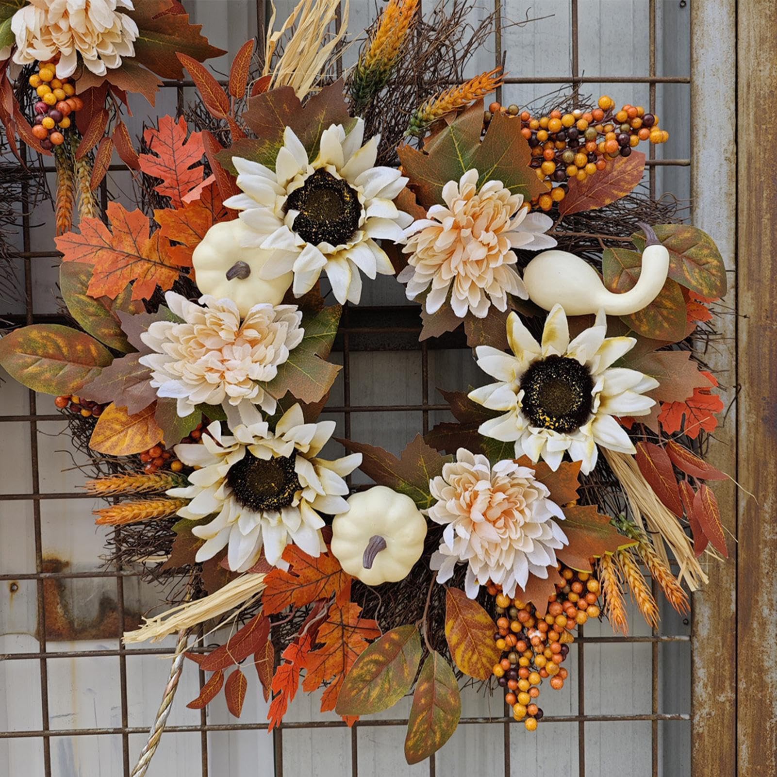 Application : convient pour la décoration intérieure et extérieure Couronne de porte artificielle fabriquée à la main avec de jolis éléments. La couronne d'automne pour porte d'entrée crée une ambiance festive dans la maison. La couronne de citrouilles artificielles est une charmante décoration pour l'automne, composée de fleuristes et d'experts en design. Placement polyvalent : que ce soit sur les portes, les fenêtres ou les murs, la couronne d'automne avec couronne de feuilles d'érable reste résistante à la décoloration, indéchirable et facile d'entretien. Automne Halloween Decorations Couronne De Citrouille Couronne Dautomne Extérieure Avec Feuilles Dérable, Décoration De Porte Dautomne Réutilisable Pour La Maison, Lappartement Et Le Bureau Du 6,02 € | DHgate La couronne de citrouilles artificielles est résistante aux intempéries, durable et reste indéformable même en plein soleil. Accents d'intérieur élégants : la couronne d'automne pour porte d'entrée convient à l'intérieur et à l'extérieur. Caractéristiques du produit : Couleur : couleurs d'automne (orange, rouge, marron) Du rouge chaud au marron doux, la couronne de porte artificielle d'automne imite les nuances de vraies feuilles – complétée par des citrouilles et des baies qui incarnent l'automne. Guirlande de porte, couronne artificielle, 28 cm PVC couronne de porte... Couronne d'automne - 30 cm - Couronne de porte artificielle - Couronne de citrouilles artificielles - Couronne de porte pour décoration d'automne - Avec citrouille, feuilles d'érable et pommes de pin - Guirlande suspendue pour mariage, Halloween, fenêtre, porte d'entrée Couronne d'automne pour porte d'entrée aux couleurs vives, durable et résistante aux intempéries Matériau : plastique, ruban de lin, vigne Couleurs réalistes : la couronne d'automne est fabriquée en plastique et lin de haute qualité. Couronne de feuilles d'érable - Symbole d'automne réaliste Petits prix et livraison gratuite dès 25 euros d'achat sur les produits PORFOYO. Commandez Couronne d'automne - 30 cm - Couronne de porte artificielle - Couronne de citrouilles artificielles - Couronne de porte pour décoration d'automne - Avec citrouille, feuilles d'érable et pommes de pin Couronne de porte artificielle en rotin, décoration de noël et d'halloween, pour l'automne Artisanat détaillé : la couronne d'automne de porte d'entrée combine citrouilles artificielles, feuilles d'érable et baies dans un arrangement impressionnant.