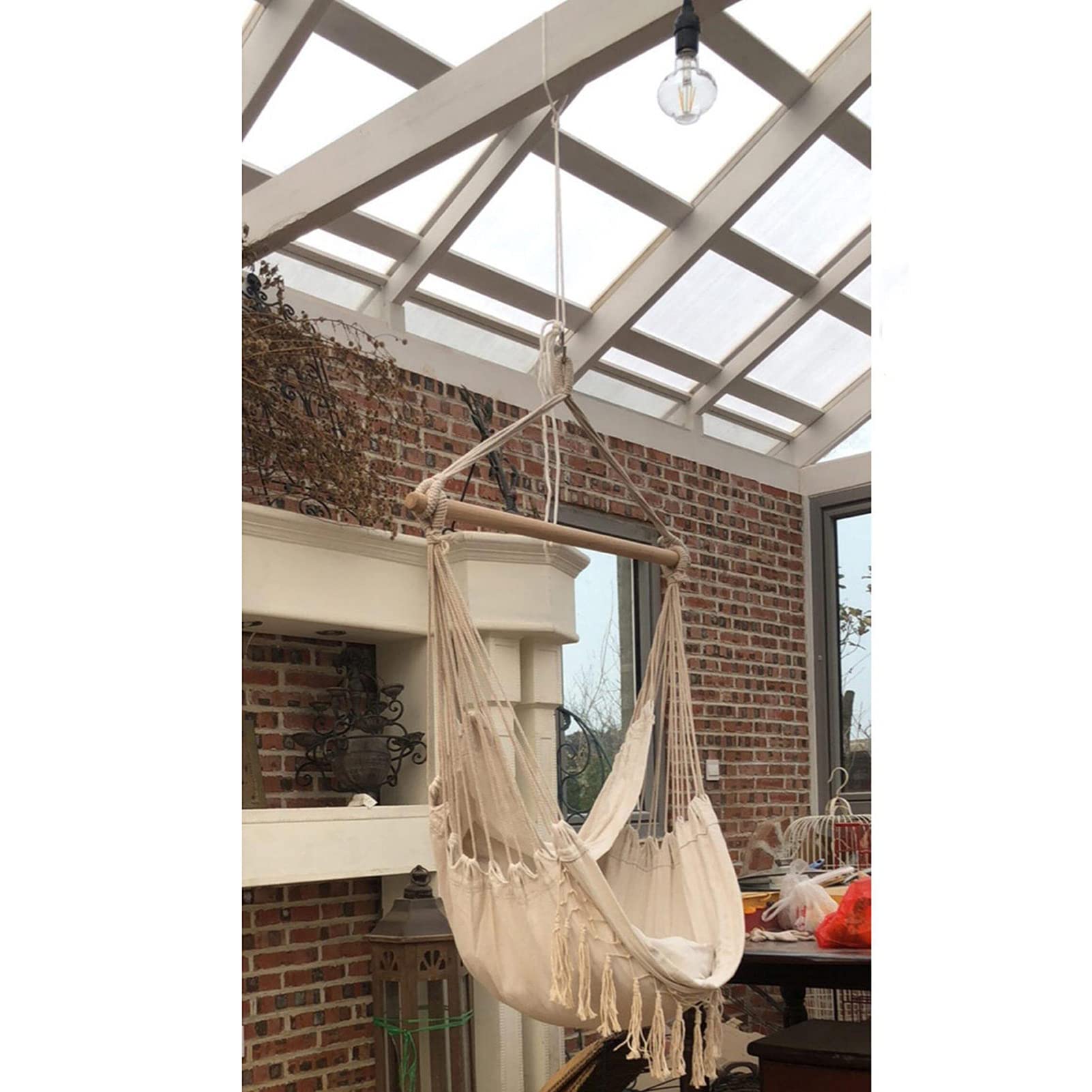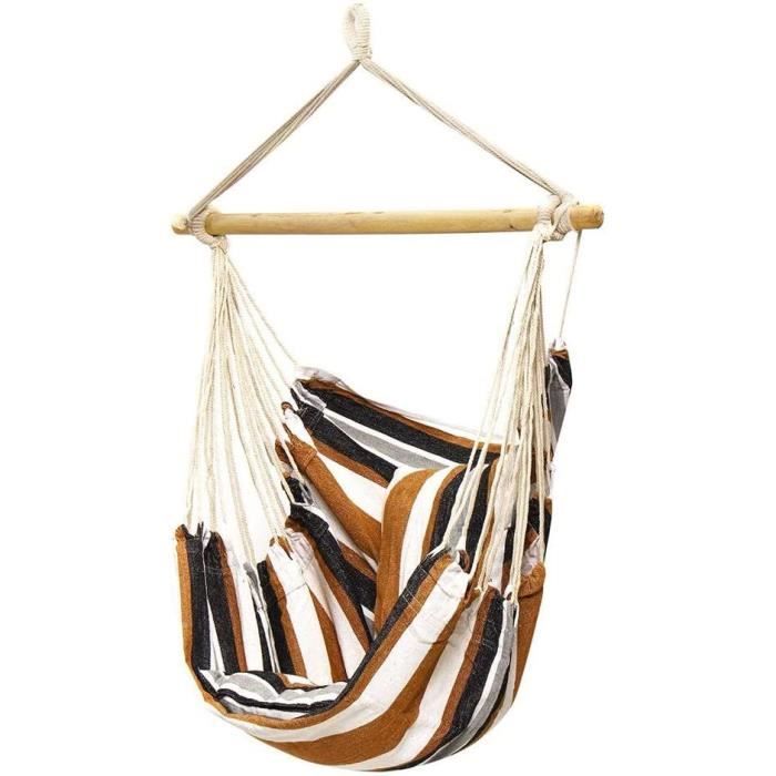 elle est également idéale pour prendre un bain de soleil ou lire sous le porche ou sur le balcon 1 Pc Hamac De Camping Hamac Portatif Balançoire Voyage Hamac En Corde... pratique et facile à utiliser : ce mécanisme d'accrochage spécial permet de suspendre plus facilement la chaise hamac aux branches d'arbre, aux solives du plafond ou aux supports de chaise hamac. Ne dépassez pas la capacité de charge maximale de 100 kg ou 180 kg. extrêmement durable et sûre : nos chaises balançoires sont fabriquées en tissu oxford de haute qualité et renforcées par des anneaux en acier, offrant un support sûr pour les adultes et les enfants, facile à transporter Hamac Avec Cordes Réglables Hamac De Camping Balançoire Extérieure Lit Suspendu, Parc, Balcon, Extérieur, Polyesterportant Hamac Camping Suspendu protection solaire intégrée : la protection solaire intégrée de la chaise suspendue oxford la protège des rayons du soleil et crée un espace de détente frais dans le jardin, sur le balcon, dans la forêt, en voyage ou en camping. Chaise suspendue hawaïenne en corde tressée – Parfaite pour une détente intérieure et extérieure un compagnon idéal pour toutes les vacances. Surveillez les enfants lorsqu'ils utilisent le hamac.