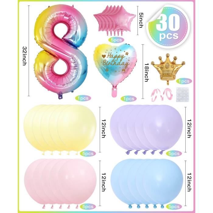 Anniversaire Arc en Ciel Pastel - IMAGINER ET CREER Ballons Aluminium Inserts Gâteau Ballon Anniversaire 8 An Fille, 32 Pouces Arc-En-Ciel Ballon Chiffre Numéro 8, Decoration Décoration Anniversaire Arc En Ciel Les inserts à gâteaux peuvent être insérés dans les gâteaux que vous préparez vous-même 【Fête Arc en Ciel Magique pour Petites Filles】Créez un univers féérique pour l'anniversaire de votre petite princesse ! Ils peuvent être scellés automatiquement en appuyant sur le trou de gonflage après le gonflage et dégonflés en insérant une paille après utilisation Carte D'anniversaire Arc-en-ciel | Vecteur Premium 【Large Application】L'ensemble de Decoration Anniversaire Arc en Ciel peut être suspendu au plafond, au couloir, aux arbres ou placé sur les murs, parfait pour décorer les fêtes d'anniversaire, les anniversaires, les fêtes à thème, etc. Arc-en-ciel de ballon photo stock. Image du fermer, jouets - 54065734 pour créer un meilleur effet visuel. Ces magnifiques ballons en aluminium feront une fête d'anniversaire merveilleuse et inoubliable pour votre enfant