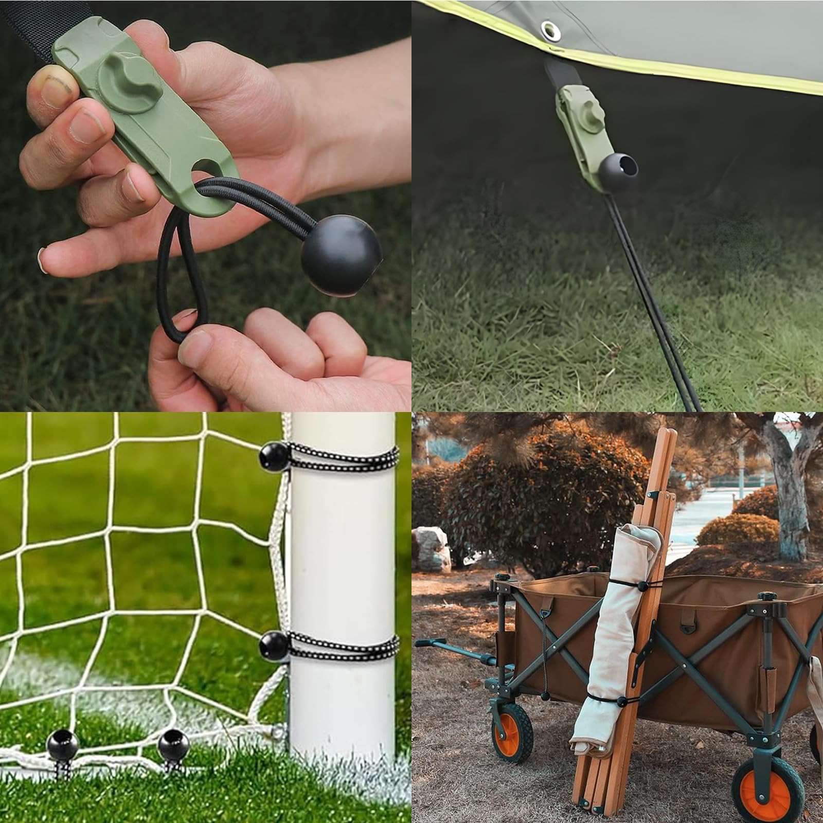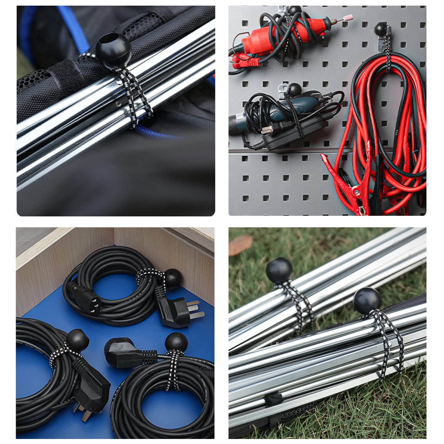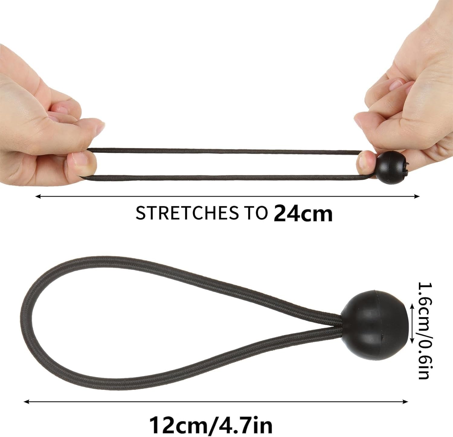 | Extensibilité fiable | - Vous pouvez ajuster librement la longueur des tendeurs élastiques pour bâches selon vos besoins afin de répondre facilement aux exigences de différents scénarios. | Lot de tendeurs élastiques à boules | - 30 tendeurs élastiques à boules, 10 de chaque taille : 10/15/20 cm. Le manchon en polypropylène haute résistance garantit une résistance à l'abrasion, aux UV et aux intempéries. | Largement utilisé | - Ces tendeurs élastiques à boules conviennent non seulement au camping en plein air, mais peuvent également être utilisés pour les bâches, les tentes, les affiches, les bannières, les trampolines, les écrans de projection, etc. | Facile à utiliser | - Pour fixer, enfilez l'élastique dans les deux œillets et tirez la boucle sur la boule. Tendeurs élastiques à Boule 30 Pièces Tendeur élastique Noir, Tendeur En Caoutchouc Avec Boule,20cm Corde élastique Résistante Polyester Sandow élastique Bleu 60 mètres 9SW - Qualité PRO - Tendeur pour bâche... 20 tendeurs élastiques avec Boule, Noirs, 15CM