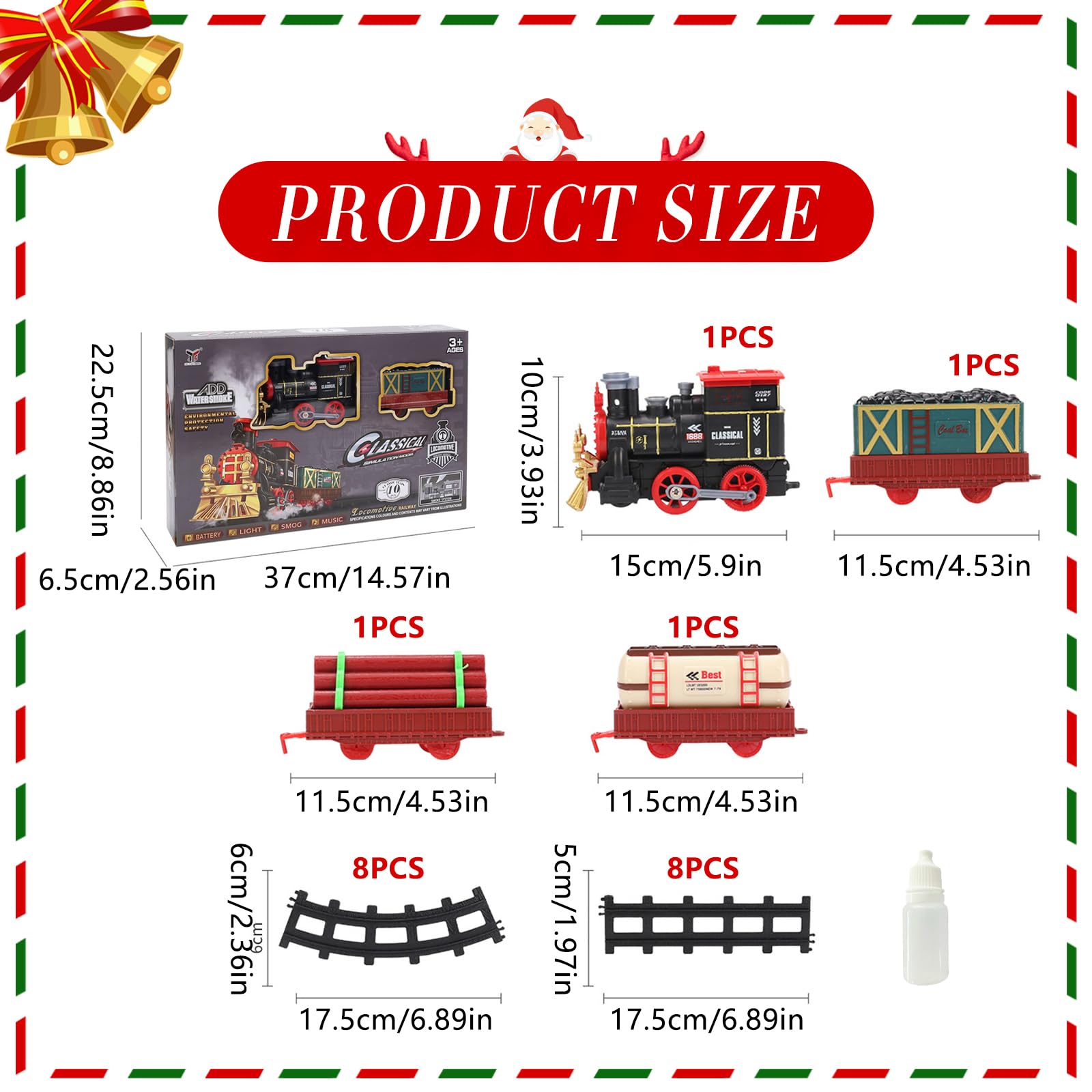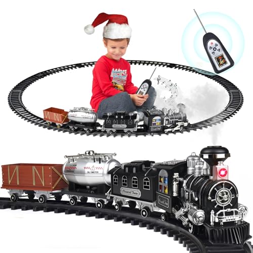 [Ensemble de grande valeur]: Le train à vapeur de Noël est équipé d'une tête de wagon à vapeur, d'un wagon à charbon, d'un compartiment de wagon-citerne, d'un wagon de chargement, de 16 rails et de 2 bouteilles de stockage d'eau. Train de Noël Electrique - MARSEE - Train à vapeur Rétro Jouet - Fumé... Grâce au réalisme de la vapeur, du son, de la lumière et de l'apparence, le train électrique de Noël vous ramènera, vous et vos enfants, à l'époque de la vapeur. Choix de cadeau parfait. Vos jeunes ingénieurs peuvent facilement assembler les rails et les compartiments comme ils le souhaitent. FORMIZON Train Jouet pour Enfants, Jouet de Train à Vapeur, Train De Noël avec Fumé, Sons, Lumières, Locomotive à Vapeur, Rails et Télécommande, Cadeau pour Garçons et Filles (Train Jouet) en destockage [Excellent pour la décoration]: Imaginez le train à vapeur de Noël faire le tour de votre arbre de Noël en hiver ! Ensemble de train - QID - Locomotive à vapeur électrique - Lumières LED [Réaliste]: Les enfants peuvent ajouter de l'eau en toute sécurité dans la tête du train et la vapeur s'élèvera. [Matériau de qualité supérieure]: Fabriqué en ABS non toxique et de haute qualité, le train électrique est sûr et durable pour les jeunes enfants.