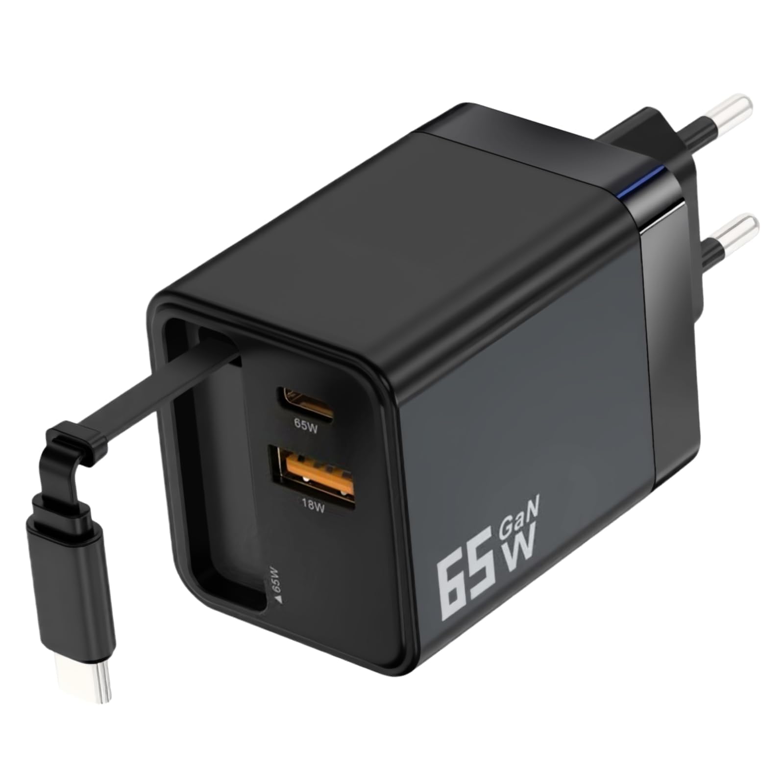 ✅ Design compact & robuste Encombrement réduit de près de 50 % par rapport aux adaptateurs classiques, grâce à la puce GaN avancée Câble rétractable 65 cm pratique, sans nœuds, prêt à l’emploi. 65w Usb C Chargeur Chargeur USB C GaN 65W Avec Câble Rétractable Et 3 Ports (2 Chargeur Anker ✅ Puissance intelligente & polyvalente 2 ports USB-C distribuent jusqu’à 65 W, un port USB-A Quick Charge 3., 0., Reconnaissance automatique du protocole : PD, QC, PPS inclus ✅ Sécurité intégrale Protections multiples réparties dans un boîtier ignifuge pour sécuriser la charge de vos appareils. Idéal pour téléphone, tablette et ordinateur portable. Câble rétractable évite les enchevêtrements et s’intègre naturellement dans un sac ou valise. Description du produit Ce chargeur compact 65 W offre 1 port USB-A et 2 ports USB-C Power Delivery GaN. Grâce à sa prise pliable, il se glisse facilement dans une poche ou un sac. Compatible avec smartphones, tablettes et ordinateurs portables, il recharge jusqu’à 3 appareils simultanément. Sa technologie GaN assure une charge rapide et sécurisée. Design élégant en blanc, éco-conçu... ✅ Utilisation universelle Recharge rapide Compatible avec MacBook Air/Pro, iPhone, iPad, Galaxy, Pixel, Switch, Steam Deck… Alimentation fiable aussi pour tablettes et accessoires. Recharge un iPhone ou un smartphone Android à 60 % en 30 minutes, et alimente efficacement un MacBook Pro ou autre laptop USB-C. Un seul chargeur pour tous vos besoins à la maison comme en voyage. ✅ Toujours à portée Compact, léger, parfait pour le sac, la valise ou le bureau. Le boîtier en PC+ABS ignifuge garantit une durabilité optimale. Chargeur USB C 3-en-1 compact et pratique Ce chargeur mural GaN 65W est équipé de deux ports USB-C, dont un avec câble rétractable intégré (65 cm), et d’un port USB-A, vous permettant de charger trois appareils en même temps. Baseus Chargeur 65W, GaN III Alimentation Multiple avec 2 Prises, USB-C