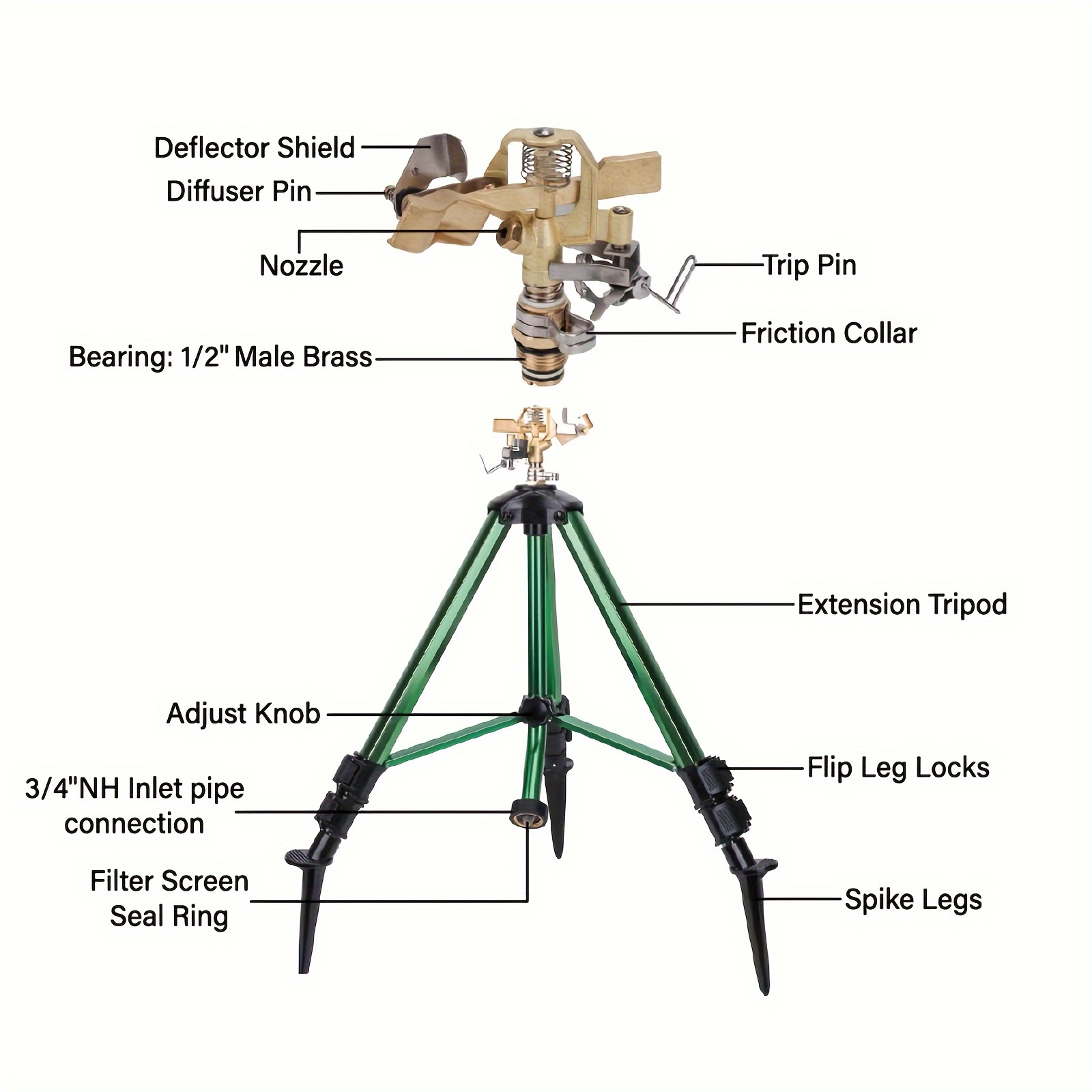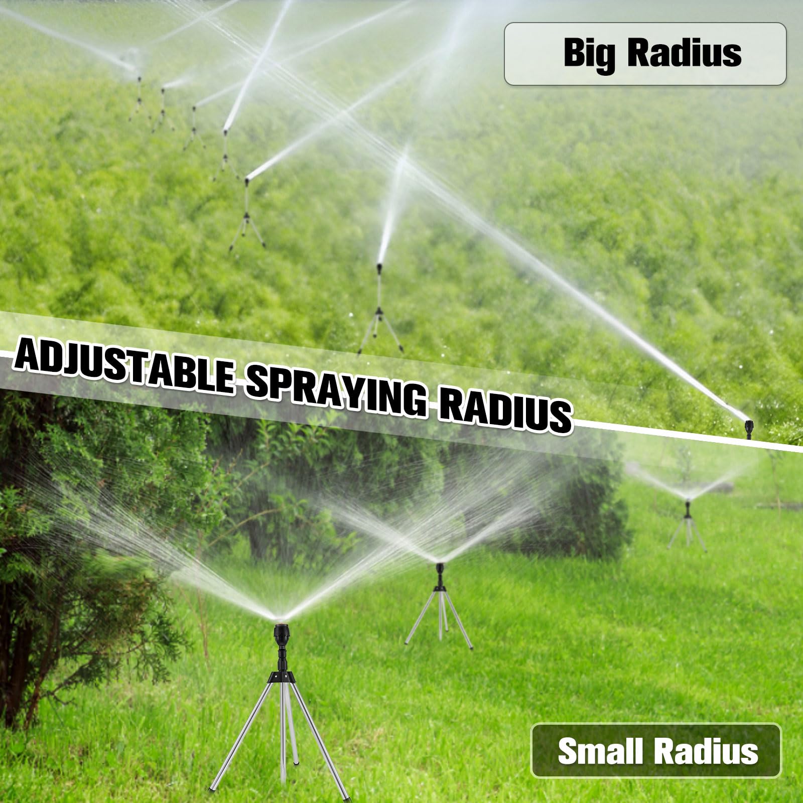 Homeponnew Arroseur sur trépied pour pelouse/jardin, buse rotative à 360 ° avec rayon de pulvérisation et motif réglables, système d'irrigation robuste avec support stable : : GardenAbout this item Irrigation efficace du jardin Dimensions : 64 x 50 cm (emballé). Arroseur Pour Grande Surface Arroseur à Trépied Rotatif à 360 Degrés - Buse D'arrosage Arroseur Rotatif 360° Jardin Caractéristiques : 1., Notre arroseur adopte un design rotatif pour pulvériser un jet d'eau fin qui est « plus doux que la pluie », augmentant l'humidité du sol et favorisant l'absorption et la croissance des plantes., 2., Le trépied est réglable en hauteur, et vous pouvez personnaliser la distance et la portée de pulvérisation, allant du demi-cercle au cercle. Paramètres de pulvérisation personnalisables : avec une hauteur de trépied réglable et un angle de rotation allant de 30 degrés à 360 degrés, vous pouvez facilement personnaliser votre configuration d'arrosage pour s'adapter à n'importe quelle disposition de jardin. Matériaux robustes pour plus de durabilité : fabriqué en acier inoxydable et en ABS, cet arroseur est conçu pour résister aux conditions extérieures tout en conservant sa fonctionnalité au fil du temps. Enseble coplet de buses de pulvérisation pour nettoyeur haute... Arroseur de jardin VINGVO - Buse d'arrosage réglable par arrosage Cet arroseur de pelouse robuste et puissant vous servira pendant de nombreuses années., 4., Facile à utiliser : il peut être installé n'importe où, et le design astucieux du trépied anti-dumping garantit qu'il peut être fermement fixé peu importe où il est placé., 5., Large gamme d'utilisations : cet arroseur à trépied peut être utilisé pour l'irrigation de la pelouse et de l'herbe, adapté pour la maison, le jardin, la cour et le refroidissement., . Contenu de l'emballage : 1 trépied rotatif., 1 buse d'arrosage. L'angle de rotation peut également être ajusté de 30 degrés à 360 degrés, ce qui est flexible et pratique.