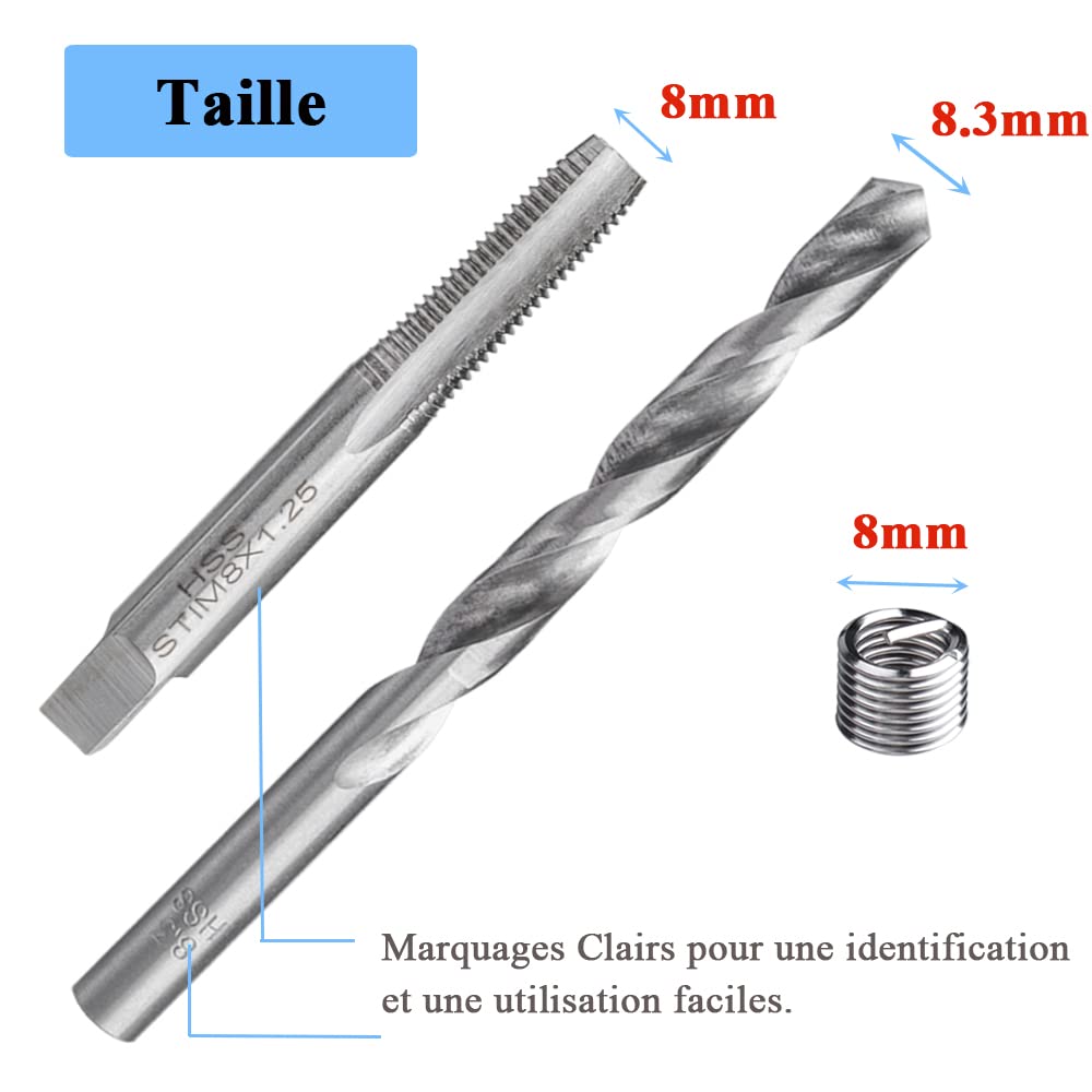 Filet Rapporté Kit De Réparation De Filetage, 30 Pièces M8 Kit De Réparation De Filetage Kit D'outils à Main Compatible Pour Réparation Automatique ( M8)(M8) M6 Thread Repair Kit Kit Reparation Filetage Applications pour l’acier, la fonte et l’aluminium. Kit Réparation Filetage HELICOIL 88pcs M6 M8 M10 - Auto Spécifications: Matériau des inserts filetés: acier inoxydable Taraud et filetage du foret: HSS Clé: électrophorèse de Couleur: comme indiqué Taille de la clé: 55 * 20mm/2., 17 * 0., 79 pouces Spécification de fil (facultatif): M5/M6/M8 Comment utiliser: 1., Percez le fil endommagé à l'aide d'un foret de taille correcte (fourni) 2., Appuyez sur le trou fourni avec le robinet fourni 3., Insérer l’insert enroulé dans l’applicateur 4., Vissez la bobine dans la coulée 5., En utilisant un outil de rupture de cosse, détachez la balise sur l'insert 6., Thread est réparé et prêt à être utilisé. Mode d'emploi: Percez le fil endommagé à l'aide du foret de taille correcte (fourni). Tapez sur le trou foré à l'aide du taraud fourni. Filetage Rapporté Kit Réparation Filetage M6 - 30 Pièces Pour Inserts Filetés Outil Mécanicien Outil idéal: Outil de réparation , comprend un kit de réparation de filetage 30 pc comprenant 25 insertions de filetage. Application: Idéal pour la restauration de filetages endommagés, convient à la réparation de moteurs et à d’autres véhicules automobiles. Matériau HSS: Fabriqué en matériau HSS de haute qualité, robuste et L'utilisation de l'acier à haute vitesse présente de bonnes performances ainsi qu'une bonne résistance et ténacité. Package inclus: 25 x inserts filetés 1 x outil de rupture de cosse 1 x outil d'installation 1 x clé 1 x taraud 1 x foret