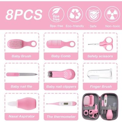 Kuketes – Trousse de Soin Bébé Naissance Set de Toilette Bébé,13 pièces avec lime à ongles, ciseaux, tire-tique, seringue pour bébé, brosse, peigne. Complet pour le voyage et l'usage quotidien. | Votre Non toxiques et sûrs, ils garantissent la sécurité des nourrissons et des jeunes enfants Trousse de toilette bébé Trousse toilette bébé confidence, aussi pratique de jolie Coupe-ongles et lime Une coupe sans souci commence ici : les lames arquées épousent les courbes naturelles des ongles, tandis que les poignées tactiles empêchent les glissements, permettant aux parents de maîtriser facilement le soin des ongles de bébé. Choix de cadeau pour les nouveau-nés: Nos articles pour bébé sont le cadeau idéal pour les futures mamans ou les nouveaux parents. Babibliss Trousse de Soin Bébé - Dés la naissance -Grand format, Kit Soin Bébé Naissance, 13 Articles Inclus: Débarbouillettes 100% Coton, Thermomètre de Bain, Brosse à Dent en Silicone, et Plus Sécurité à 100% pour bébé: Tous les accessoires pour bébé de ce coffret sont fabriqués à partir de matériaux sans BPA et constituent le choix idéal pour les soins quotidiens de bébé. Description du produit Notre trousse de soins pour bébé permet de couper les ongles en toute sécurité avec des outils de précision, tout en répondant aux besoins de santé et d'alimentation de bébé. Brosse à cheveux pour bébé Fabriquée avec des poils ultra-doux, cette brosse prend soin du cuir chevelu sensible de bébé et l'apaise pendant le toilettage pour favoriser une relaxation sereine. Brosse de bain pour bébé Les poils en silicone ultra-doux stimulent la circulation sanguine du cuir chevelu de bébé grâce à des massages apaisants qui créent les bases de cheveux forts et éclatants. Peigne à cheveux pour bébé Avec ses poils doux comme un nuage et ses dents arrondies certifiées de sécurité, ce peigne transforme le soin des cheveux en un rituel de complicité : il protège la peau de bébé tout en créant des expériences sensorielles apaisantes. Pince à épiler La pointe arrondie de la pince permet de retirer en toute sécurité les obstructions des voies nasales délicates de votre bébé. Mouche-bébé L'embout d'aspiration rond, doux et confortable, évite d'abîmer la muqueuse nasale de bébé et aide à déboucher les nez bouchés. Elle assure le confort de bébé et donne confiance aux jeunes mamans à chaque instant de leur éducation.