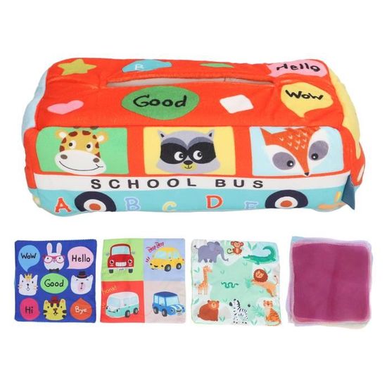 Kit de jeu sensoriel : Tailles : La taille de la boîte à mouchoirs est de 21 x 12 x 8,5 cm, La taille du papier crépitant est de 17,5 x 17,5 cm, La taille de l'écharpe colorée est de 19,5 x 19,5 cm. Ce kit de jeu sensoriel de la marque TIANNAIT est un ensemble ludique et éducatif pour les enfants, comprenant une boîte à mouchoirs en coton indéchirable, 3 feuilles de papier crépitant et 8 écharpes colorées Le procédé de transfert thermique est utilisé. Le frottement peut produire un bruit de « bruissement » qui peut attirer l'attention de l'enfant et intéresser l'enfant. Il vous permet non seulement d'aider votre enfant à reconnaître différents animaux et choses et à grandir heureux, mais il peut également être l'enfant lui-même ou jouer avec d'autres enfants, il peut empêcher les enfants de faire du bruit et favoriser la concentration et les capacités pratiques des enfants. Boîte à Mouchoirs Indéchirable Jeu Sensoriel TIANNAIT Kit De Jeu Sensoriel - Boîte à Mouchoirs En Coton Indechirable Pour Enfants Contient 3 Papiers Crepitants Et 8 Echarp Jouet Bebe 6 Mois Il ne se décolore pas et a des couleurs vives et riches, de sorte que les enfants peuvent apprendre en jouant. La surface du papier crépitant et des boîtes à mouchoirs présente également des motifs de bandes dessinées, de lettres, de chiffres, de figures géométriques et de fruits. Il utilise une technologie de transfert thermique respectueuse de l'environnement qui ne se décolore pas après le nettoyage, et les couleurs sont vives et belles, de sorte que les enfants peuvent apprendre à jouer. Ne se déforme pas : cette boîte à mouchoirs est fabriquée en coton, ne bouloche pas, peut rester en trois dimensions, ne se déforme pas facilement lors du pressage et du pétrissage, elle est douce au toucher et est indéchirable, solide et durable. Boîte à Mouchoirs en Tissu Jouets d'Apprentissage Précoce Jouets Sensoriels avec Foulard Mouchoirs pour Garçons Filles Enfants Bébé Tout-Petits Cadeaux, Voiture [Favorise le développement du cerveau des enfants] Les produits en tissu pour enfants peuvent être lavés et réutilisés. Jouets Montessori pour Bébé 0 3 6 12 Mois,Boîte à Mouchoirs Bebe Jouet...
