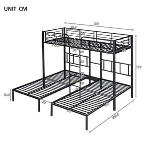 Les tubes en acier épais assurent une stabilité accrue pour une utilisation longue durée. Ce lit est idéal pour un gain de place ! ※ Ce produit sera livré en 3 colis. Veuillez patienter 2 à 3 jours supplémentaires ou contacter notre service client. Le lit est expédié en trois colis depuis l'Allemagne. Lit 3 Personnes Gain De Place Vepssder Lit Superposé 3 Places, 90x200cm Et 120x200cm Et Lit Mezzanine Fer Et MDF Blanc Noir Il est parfait pour une grande famille ou pour accueillir des invités de passage. Les trois colis peuvent ne pas arriver le même jour, mais ils répondront à vos besoins. ※ Pour toute question concernant l’installation, veuillez nous contacter au plus vite. Les deux lits superposés supérieurs sont entourés de barrières de sécurité robustes qui empêchent les chutes et garantissent un sommeil réparateur. Sécurité]Ce lit superposé triple est certifié EN747 et convient aux enfants de six ans et plus. Les deux lits superposés supérieurs sont entourés de barrières robustes qui empêchent les chutes et garantissent que les enfants peuvent dormir paisiblement L'espace vertical est optimisé pour un gain de place considérable au sol, et les deux lits superposés supérieurs sont équipés de solides barrières pour éviter les chutes accidentelles et garantir un sommeil paisible. 【Matériaux de qualité】 : Ce lit superposé triple est fabriqué avec une structure en acier robuste, vous évitant ainsi tout risque de chute. 【Sécurité】 : Ce lit superposé triple est certifié EN747 et convient aux enfants de six ans et plus. Merci de votre patience. Lit superposé triple en bois massif blanc, 90x200 cm, lit d'enfant à design élevé | Leroy Merlin Lit superposé avec rangement 90x200 MILANO en bois design 【Optimisation de l'espace 】: Ce lit superposé triple exploite l'espace vertical pour un gain de place considérable.