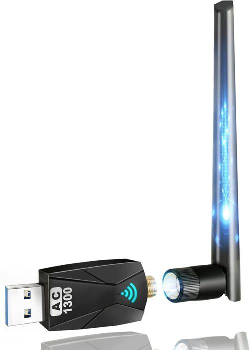 👍【Conception compacte et compatibilité étendue】L'adaptateur réseau Wi-Fi sans fil est compatible avec PC portable de bureau pour Windows Vista/XP/Win7/8/10, Linux, MAC OS 10., 9-10., 15, normes sans fil (IEEE 802., 11ac, IEEE 802., 11a, IEEE 802., 11n, IEEE 802., 11g, IEEE 802., 11b), veuillez lire le guide d'installation avant de l'utiliser, s'il y a des problèmes lors de son utilisation, n'hésitez pas à nous contacter. La conception légère et portable vous permet de l'emporter à tout moment, toujours un bon compagnon pour votre vie et votre travail. Adaptateur WiFi AC1300 Mbps RUIZHI Clé WiFi 6, WiFi USB AX5400, 5374 Mbps Clé WiFi Pour PC, Dongle WiFi, USB 3.0 Adaptateur Dongle Wifi 1300 Mbps 2.4g 5ghz 👍【Double antenne WiFi 5dBi à gain élevé】L'adaptateur USB WiFi sans fil est équipé de deux antennes omnidirectionnelles double fréquence à gain élevé, qui peuvent augmenter la zone de couverture du signal sans se soucier des obstacles et de la faible atténuation du signal, ce qui rend l'adaptateur WiFi USB pour assurer un gamme étendue de connexion WiFi et offre une excellente stabilité pour les ordinateurs de bureau, les ordinateurs portables et les PC., 👍【Interface USB3., 0 haute vitesse】L'adaptateur USB Wi-Fi sans fil avec interface USB3., 0, qui est 10 fois plus rapide que l'USB 2., 0 traditionnel jusqu'à 5 Gbit/s, rétrocompatible avec les appareils USB 2., 0 et 1., 1., Cela signifie que l'adaptateur Wi-Fi a de meilleures performances de débit et une connexion Internet plus stable. 👍【Ultra-Rapide 1300 Mbps Haute Vitesse 802., 11ac 5G/ 2., 4G】 Met à niveau votre adaptateur USB Wi-Fi sans fil à 1300 Mbps avec 802., 11ac jusqu'à 867 Mbps sur la bande 5,8 GHz et 400 Mbps sur 2,42 GHz pour les jeux en ligne et le streaming vidéo HD transparent, assurez-vous que le signal réseau est plus stable, résout efficacement les problèmes de zone aveugle tels que les cloisons et les longues distances, réalisant ainsi la vitesse ultra-élevée du 1300 Mbps. Clé WiFi Puissante, ZAMUS Cle WiFi AC1300 Mbps Adaptateur WiFi USB 3.0 Double Dande 2.4G/5GHz Avec le cryptage WPS à une clé (prise en charge WEP/WPA/WPA2/TKIP/AES) peut assurer la sécurité des connexions réseau sans fil. Il prend en charge une vitesse de bureau. UGREEN Clé WiFi Puissante AC1300Mbps Adaptateur USB WiFi Double Bande...