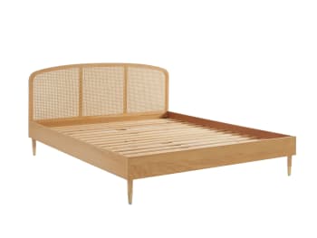 Lit Coffre 140x190 ,Lit Double Lit Coffre Hydraulique Avec 2 Tiroirs Et Sommier A Lattes Velours Sans Matelas Gris 96821967 Lit à Tiroirs Amana Cannage Rotin 140x190 Sommier Inclus - Lit BUT Description du produit Lit double INES - Cadre en panneaux de particules, revêtement papier décor effet chêne - Tête de lit en MDF et cannage rotin circulaire - Pieds en bois massif recouverts de papier décor effet chêne - Sommier à lattes 140x190 inclus (32 lattes), matelas non inclus - Charge maximum supportée : 220kg - Dimensions : L146 x P196 x H100cm - Poids : 60,6kg - Dimensions du colis 1 : L214 x P42 x H16,5cm - Dimensions du colis 2 : L156 x P83,5 x H9,5cm - Poids du colis 1 : 38,3kg - Poids du colis 2 : 29,9kg Avertissement De Sûreté Suivez les instructions de montage pour une installation sûre, faites attention aux bords tranchants potentiels et ne dépassez pas la limite de poids maximale de 220 kg. Lit double ines cannage rotin 140x190 sommier inclus Description du produit Le lit double INES incarne parfaitement le style naturel et bohème. Son cadre de lit met en valeur l'essentiel, créant ainsi une atmosphère épurée et apaisante dans votre chambre à coucher. On aime également cette tête de lit en cannage circulaire, très tendance Lit 140x190 Avec Sommier BAÏTA Cadre De Lit à Tiroirs Amana Cannage Rotin 140x190 Sommier Mobilier Chambre Effet Chêne Une tête de lit en cannage