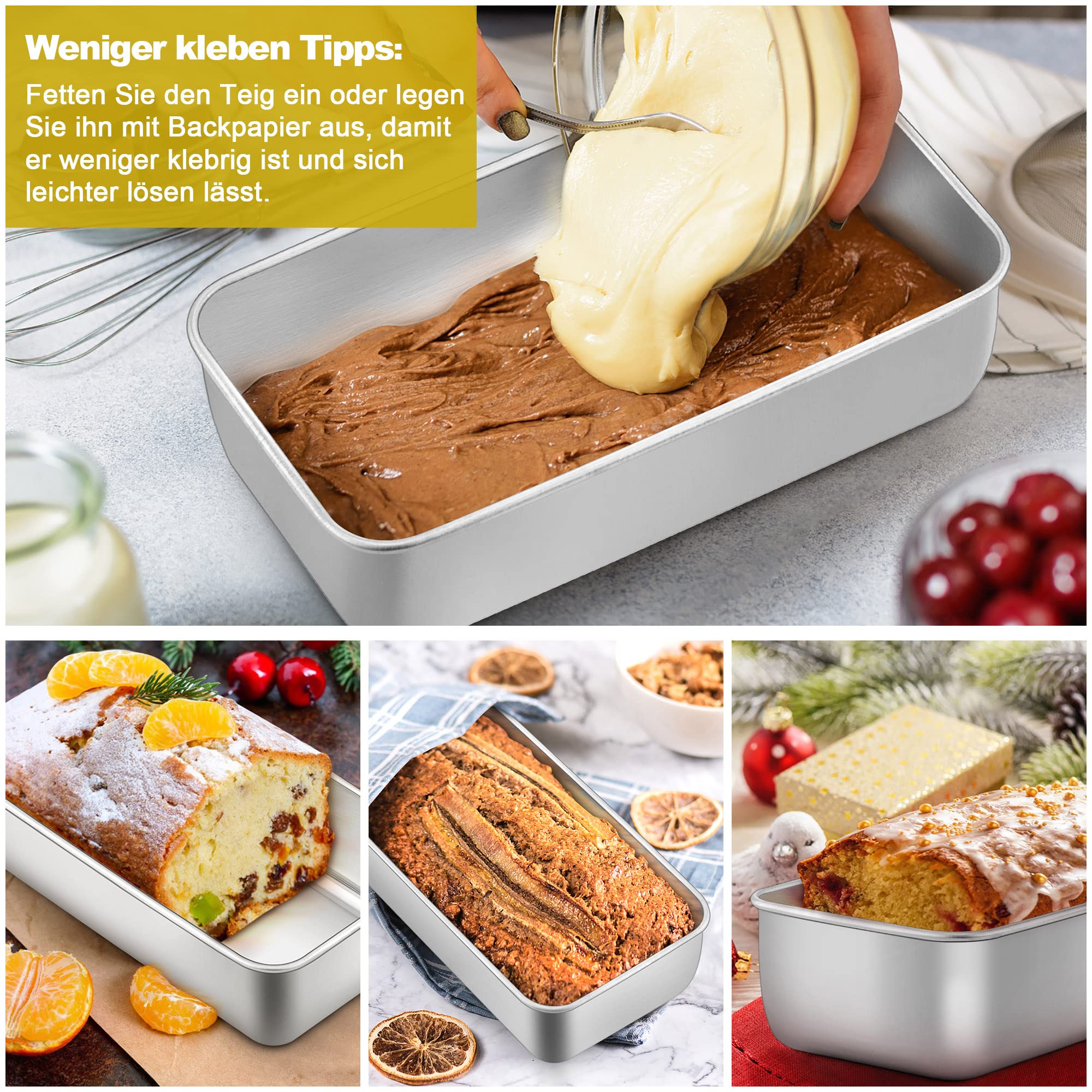 Moules à Pain Acier Inoxydable Moule Antiadhésif Rectangulaire 2 19x9x5cm - Antiadhésifs | Four Et Air Fryer Moule Pain De Mie Avec Couvercle Moule Inox La construction monobloc sans espace mort empêche l'accumulation d'aliments, se nettoie également facilement à la main, passe au lave-vaisselle et permet de gagner un temps précieux (pour une solution plus facile, il est recommandé d'utiliser du papier sulfurisé ou de la graisse) Test du lot de 2 moules à pain antiadhésifs Curta Test des moules à pain E-far en acier inoxydable : cuisson saine et facile - Construction robuste, résistant à la rouille et aux fissures, une excellente alternative au moule à pain en aluminium ou avec revêtement antiadhésif., Conseils d'utilisation : 1., Veuillez laver le moule à cake avec de l'eau avant la première utilisation pour enlever les résidus de fabrication., 2., Veuillez utiliser un torchon doux pour nettoyer le moule à pain afin de préserver la belle surface lisse., 3., Veuillez les nettoyer et les sécher après utilisation et les ranger dans un endroit sec. Utilisation polyvalente : contient 2 grands moules à cake de 31,2 x 13,7 x 7,5 cm de profondeur qui ont plus de capacité que les moules à pain traditionnels, ils répondent facilement aux exigences des réunions de famille et des réunions entre amis et conviennent à une variété d'aliments, tels que la préparation de délicieux pain aux bananes, toasts aux noix, gâteaux, brownies ou crème glacée. Moules À Pain Pour La Cuisson - Boîte À Toasts En Alliage D'Aluminium Design pratique : 7,5 cm de haut qui peut contenir plus de pâte et donner au pain une belle forme, bords roulés sans pointes tranchantes pour protéger vos mains et vous offrir une prise en main confortable, design sans couture en une seule pièce pour éviter les fuites au fond et garder votre four propre Joyfair Moule à pain en acier inoxydable de qualité alimentaire sans revêtements toxiques pour votre sécurité. - Dimensions : 31,2 x 13,7 x 7,5 cm. - Grande capacité que les moules à pain traditionnels, idéal pour les réunions de famille et les réunions entre amis. - Méthode de nettoyage : lavage à la main et passe au lave-vaisselle Autres caractéristiques : - 7,5 cm de profondeur pour contenir plus de nourriture sans renverser. Cuisson uniforme : surface classique en acier inoxydable non revêtue avec fond plat permettant une répartition rapide et uniforme de la chaleur, assure une cuisson uniforme et forme parfaitement le pain, le four est sûr et résiste à des températures élevées allant jusqu'à 232 °C, il est adapté pour la cuisson de tous les types de pâtisseries au four Matériau sain : le grand moule à cake Joyfair est fabriqué en acier inoxydable de qualité alimentaire sans revêtements chimiques, de sorte que vous n'avez pas à vous soucier que des substances nocives pénètrent dans vos aliments, sain pour votre cuisson quotidienne, construction robuste pour résister à la rouille et à la fissuration, excellente alternative au moule à pain en aluminium ou antiadhésif La structure robuste garantit que le moule à pain ne se déforme pas même à haute température, et le design du fond plat permet un transfert de chaleur efficace et uniforme, de sorte que vous pouvez obtenir la forme parfaite pour votre pain, un bon assistant pour vos compétences de cuisson dans la cuisine.