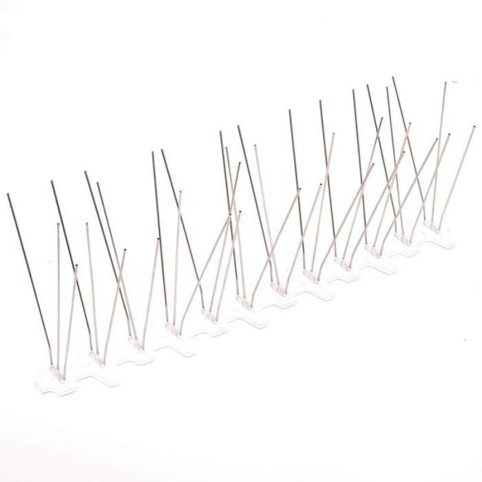 Vous en avez marre des problèmes de déjections des oiseaux à proximité de votre habitation ou de votre commerce? Pour en finir avec ce souci, découvrez le pic anti-pigeon qui repousse les oiseaux sans leur nuire. Pic anti pigeon 5m- Pic anti-pigeon flexible - Pointes en acier inoxydable inox - Ne rouille pas - Fabriqué en France Dispositif facile à installer et très efficace. ✅ FACILE À INSTALLER : Barrettes de 50 cm, sectionnables et empilables. ✅ QUALITÉ INOX : Conçu en acier inoxydable de haute qualité, il résiste à la rouille et aux UV. Le pic anti-pigeon un dispositif pour repousser les pigeons pratique et facile à poser ! Pointes d'oiseaux - ZERODIS - Dissuasion des pigeons pour piscine - 15 Pièces de rechange en stock permanent. Longévité garantie pour une protection durable. Protection discrète et efficace contre les oiseaux. Fixation simple par collage, vissage ou clipsage sur tous supports. Idéal pour protéger toitures, balcons et rebords de fenêtre. Lot de 12 Pointes Anti-Oiseaux, Pointes de clôture pour Oiseau Pigeon... Pics Anti Pigeons Répulsif Oiseaux En Acier Inoxydable, Pique Pour Barrettes Anti-pigeon 50cm Sectionnables Facile à installer La base peut être clouée, vissée ou collée… En fonction du support où vous souhaitez installer ce répulsif à oiseaux, optez pour la méthode de fixation votre choix. 30 jours pour changer d'avis Adaptez à la longueur souhaitée Un prédécoupage permet de séparer les barrettes en deux pour obtenir de plus petites sections. Expédié depuis Aurec-Sur-Loire - France Sécable : se coupe facilement , Ne rouille pas , Résiste aux UV , Inox , 10 barrettes de 50 cm , Fabriqué en France ✅ FABRIQUÉ EN FRANCE : Produit respectueux de l'environnement, sans produit chimique.