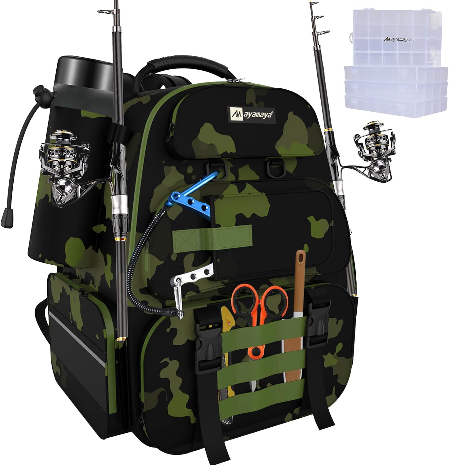 Son compartiment s’ouvre facilement à 180°, accès rapide aux boîtes de pêche via double cordon de fermeture éclair. Protège l’équipement contre l’humidité ; les pieds antidérapants empêchent le glissement sur les surfaces humides MATEIN Sac de pêche, cadeaux de pêche pour hommes idées de cadeaux pour pêcheurs Boussole de sécurité et confort d'utilisation: Le sac de peche a nouveau sangle thoracique intégrée boussole, avec fonctions navigation et aide à l'exploration, aidant à distinguer direction et garantir sécurité. Partie dorsale et bretelles : rembourrage en maille respirante ergonomique pour un confort lors de longues sorties de pêche Nouvelle sangle thoracique avec boussole intégrée : soutient navigation et sécurité Bandes réfléchissantes sur les bretelles : améliorent la visibilité en environnement sombre Que ce soit pour cadeau d’anniversaire ou Fête des Pères, le sac a dos peche est un excellent choix, idéal pour offrir à père, grand-père, petit-ami, ajoutant soutien à leurs aventures en plein air Système de rangement par catégorie et fixation canne: Le sac à dos de pêche a 2 poches dédiées aux pinces, rangeant respectivement pinces, leurres perche, couteaux pêche et cannes. Le sac canne a peche a grande poche à fermeture éclair sur face avant, facilitant accès à gants ou autres accessoires ; sa conception crochets/anneaux en D améliore polyvalence et aide équilibrer charge. 40x34x18cm avec plateau - Sac À Dos Étanche Pour Matériel De Pêche, Sac Test du sac fishpond Thunderhead : étanchéité et performance optimales Notre sac à dos de pêche avec 4*3600 boîtes à appâts. Protège vos objets essentiels : certificat de pêche, téléphone portable, Compart., Rembourré à Lunettes Sac à Dos Pêche MATEIN Sac à Dos De Pêche, Sac De Rangement Résistant à L'eau Avec Supports De Canne Et Refroidisseur, équipement De Pêche Cadeau Pour Homme, Kaki, Pêche/vacances Décontractées Sac Camouflage Pour Pêcheur Cadeau Conservez vos lunettes de soleil en sécurité et sans rayures dans le compartiment rembourré Résistance à la corrosion marine et solidité: Le Sac de peche de pêche est fait de tissu nylon 600D solide et étanche, cordon de zip solide et facile à saisir. Description du produit MATEIN sac de peche avec boite de rangement En outre, le sac à équipement de pêche a bandes réfléchissantes sur sangles, améliorant reconnaissance en environnement sombre